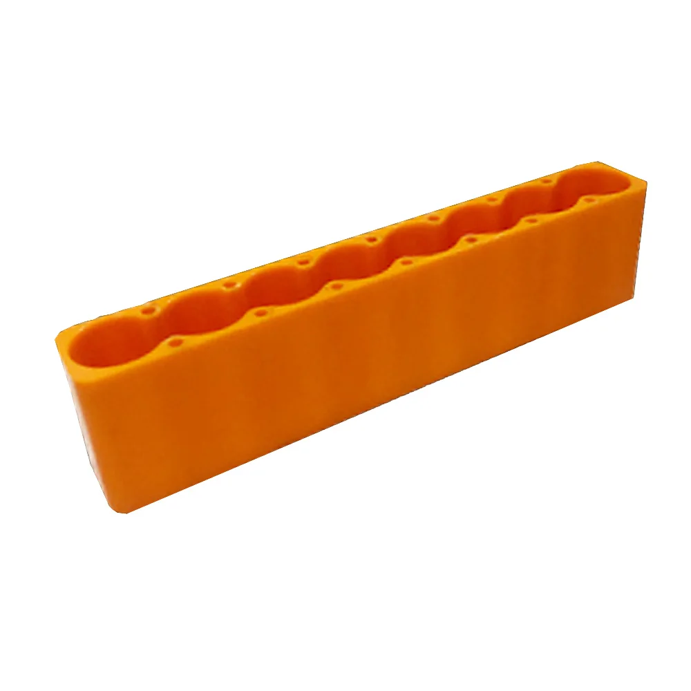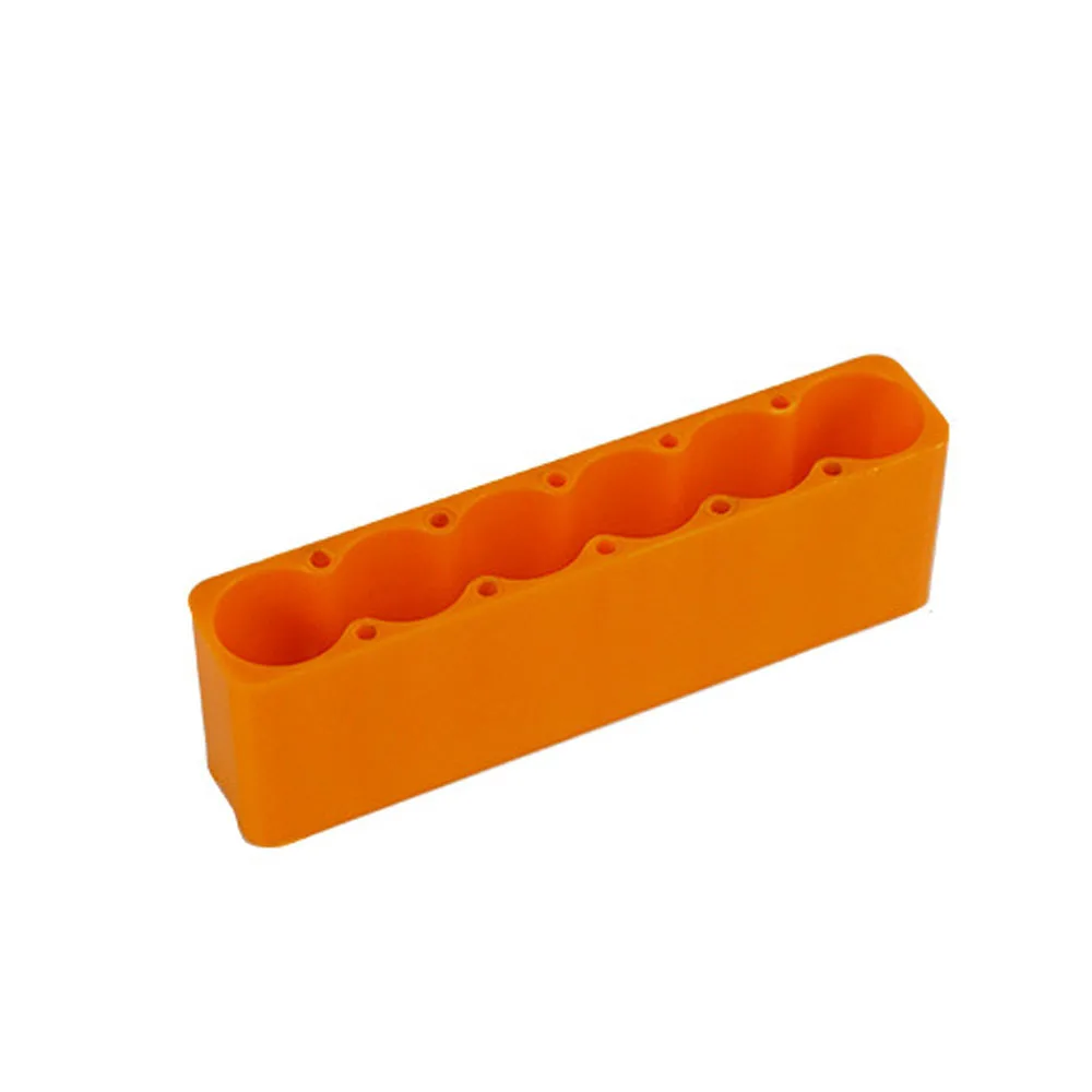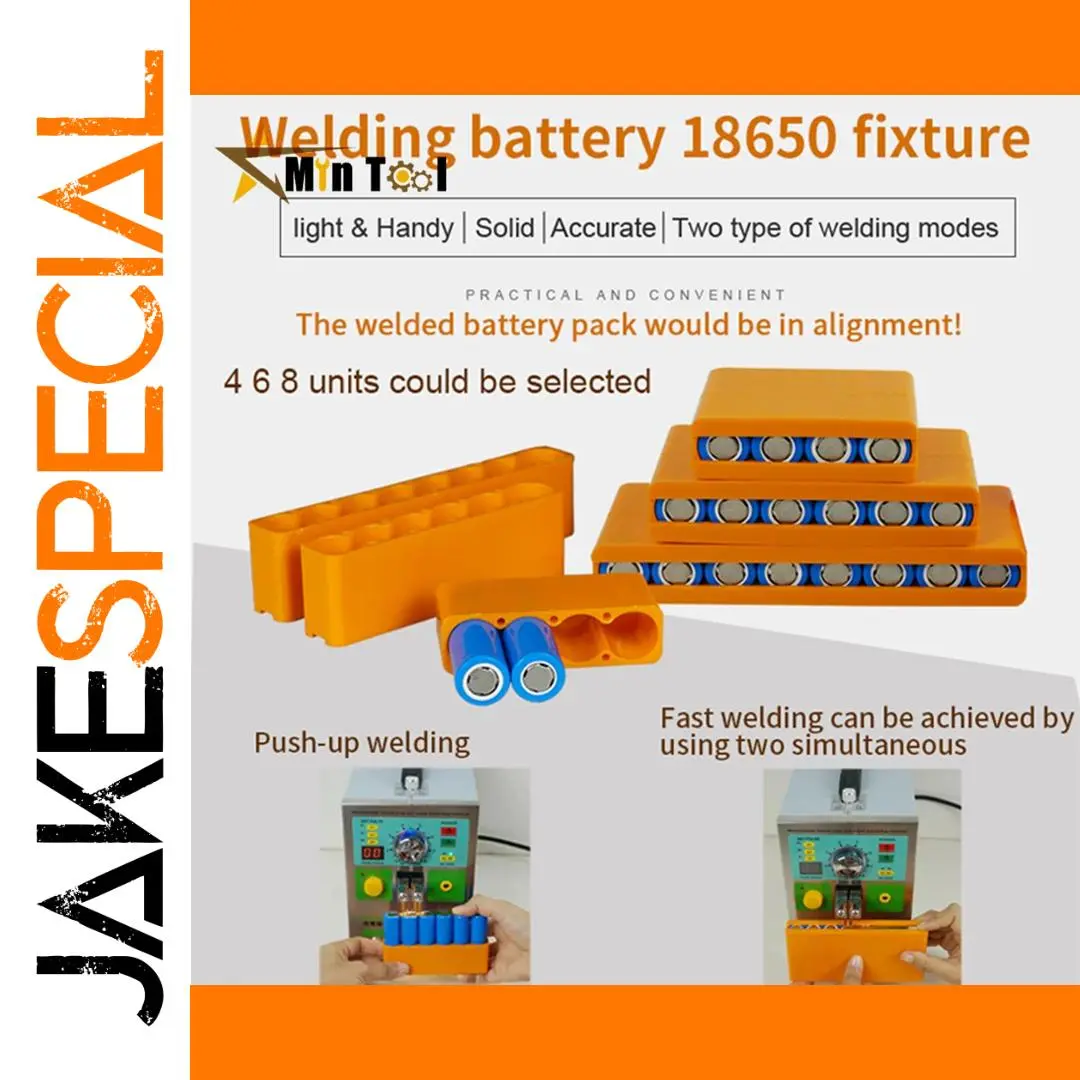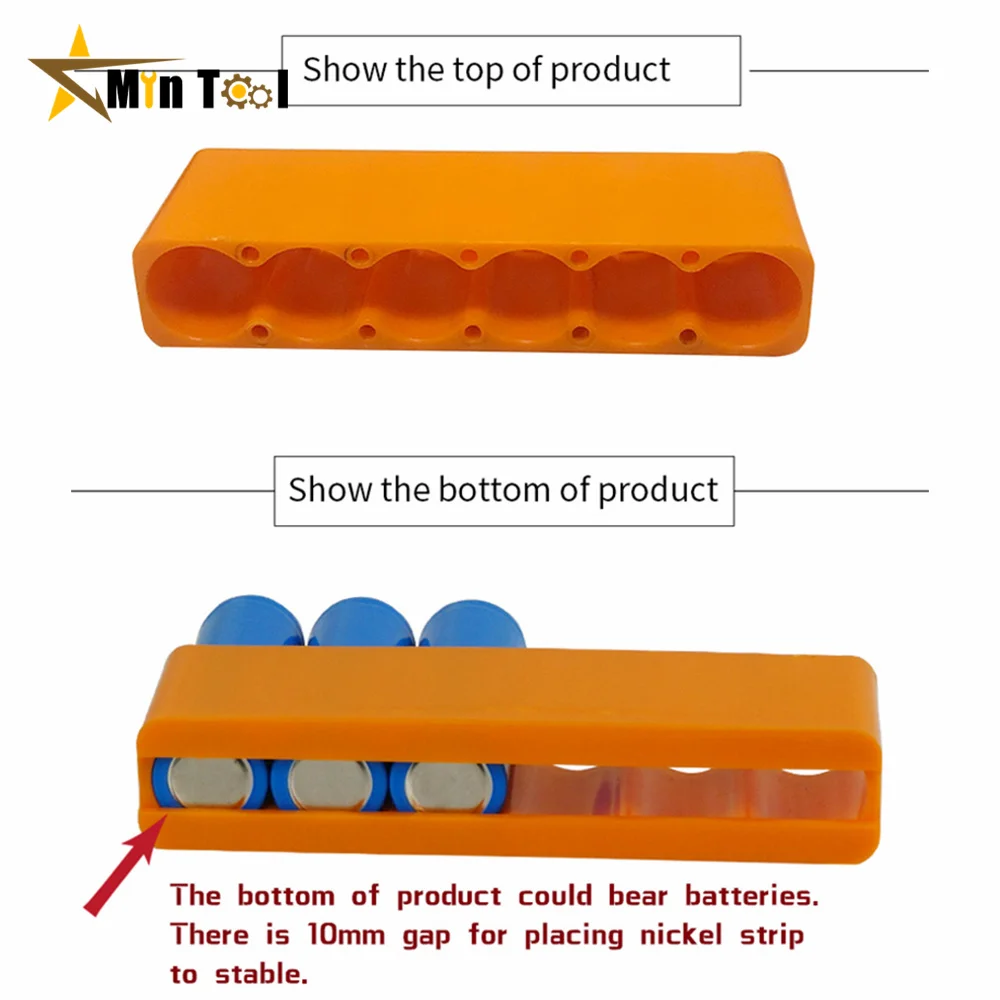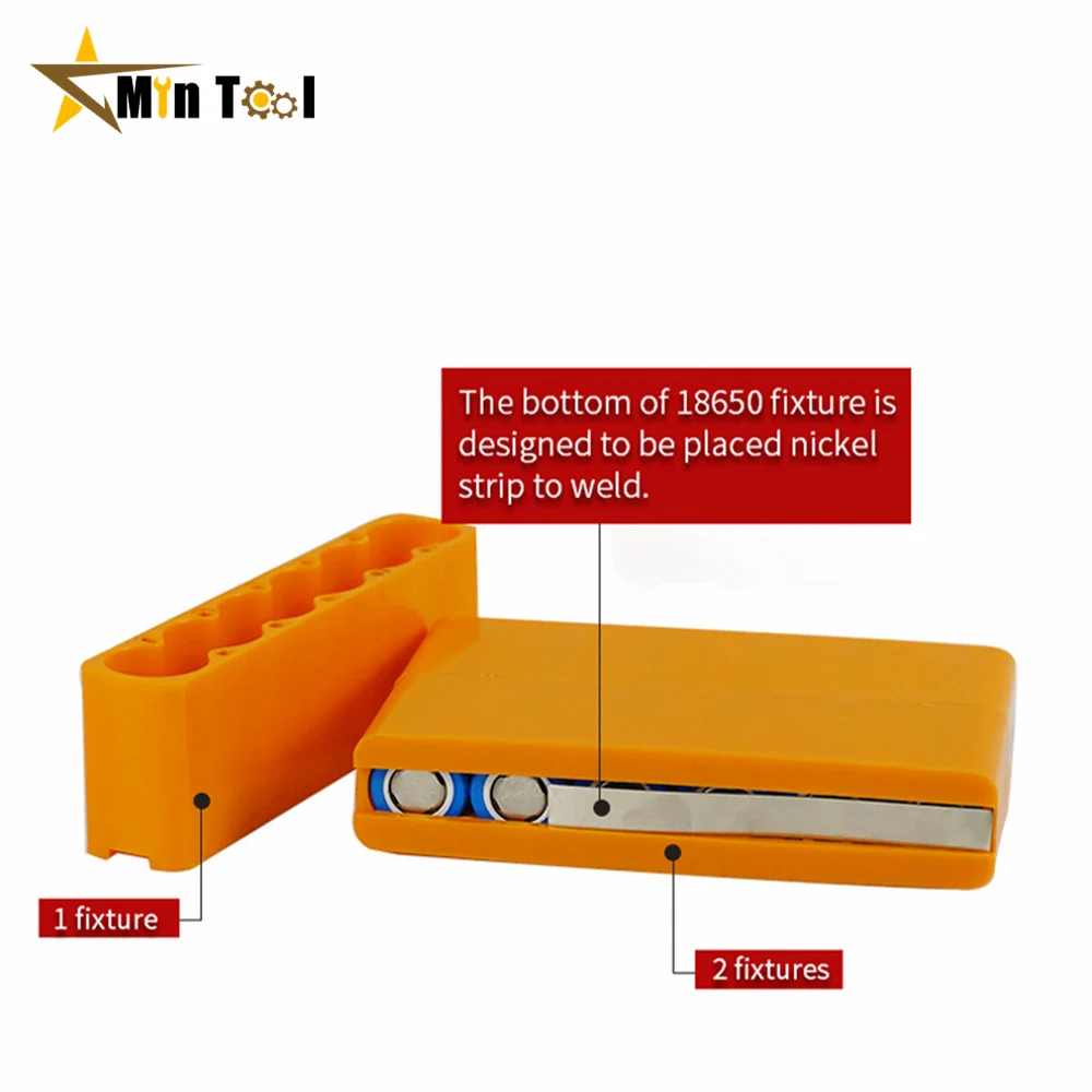 Experience efficient, precise battery pack assembly with this vibrant orange 18650 battery fixed fixture. Crafted from durable ABS plastic, it offers a sleek, modern design with a compact and lightweight structure. The fixture's bold color enhances visibility, making the welding process safer and more manageable. Its ergonomic rectangular shape features meticulously designed slots and circular metallic contacts, ensuring secure placement and simultaneous welding of positive and negative electrodes. Compatible with models #4, #6, and #8, it provides versatile options for different battery sizes. The fixture allows direct placement onto nickel sheets, streamlining your workflow while delivering neat, professional results. Ideal for power tool battery packs, it combines practicality with reliable performance to meet your needs efficiently.
