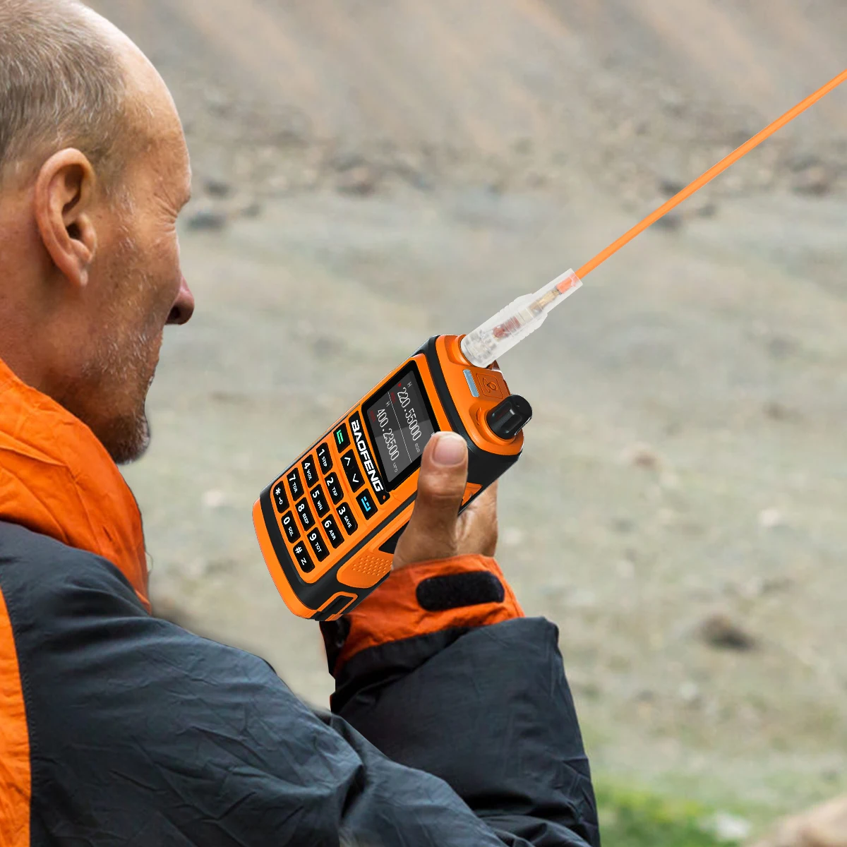 Enhance your communication with this vibrant orange ABBREE AR-771T dual-band SMA-Female flexible antenna, measuring 38.5 cm (15.3″). Designed for VHF/UHF frequencies at 144/430 MHz, it boasts a 50-ohm impedance and supports up to 10W power. Its sleek, slim, and flexible build ensures durability and ease of use, with a VSWR of less than 1.5 for efficient signal transfer. Compatible with popular walkie-talkies such as Baofeng BF-888S, UV-5R, UV-82, UV-32, and Quansheng TK11, UV-K6, this antenna seamlessly enhances your device’s performance, making it an essential upgrade for reliable communication.