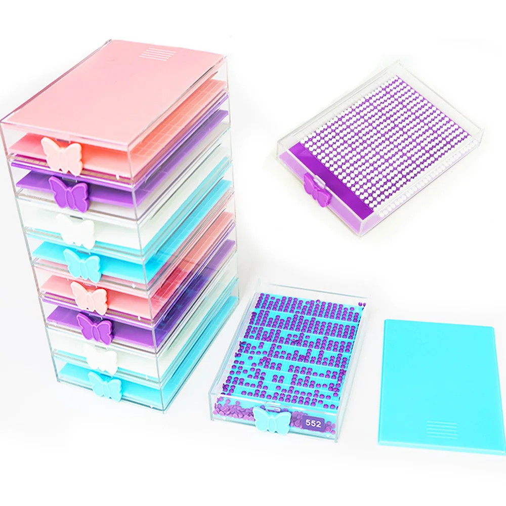 Immerse yourself in the world of diamond art with this vibrant, easy-to-organize stackable tray kit. Designed to enhance your craft experience, it offers cheerful colors and charming butterfly-shaped lids that make storage both functional and decorative. Made from durable acrylic, these trays support a variety of diamond shapes and sizes, especially suitable for full-frame paintings featuring 1-30 colors. Whether you prefer a set with a single tray, brush, and spoon, or multiple trays with additional tools, this kit is perfect for maintaining your workspace neat and inspiring. The colorful lids and textured painting accessories come together to create an engaging, lively atmosphere as you craft your masterpiece with precision and joy.