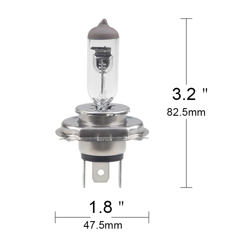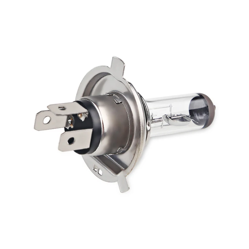 Imagine upgrading your vehicle's lighting with this high-performance H4 halogen bulb, designed to deliver exceptional brightness and clarity. Crafted with a clear, elongated glass envelope that tapers subtly at the top, it houses a bright internal filament emitting a pristine white light at 4300K. The metallic base is sleek and flat, measuring 47mm in diameter, with four small pins extending outward for reliable electrical contact. Its compact design, with a head diameter of 14mm and a total height of 76mm, ensures perfect fitment in various automotive, boat, and landscape lighting setups. This bulb provides super-bright illumination, enhancing your safety and visibility during night drives or outdoor adventures. Experience high quality and durability with each installation.