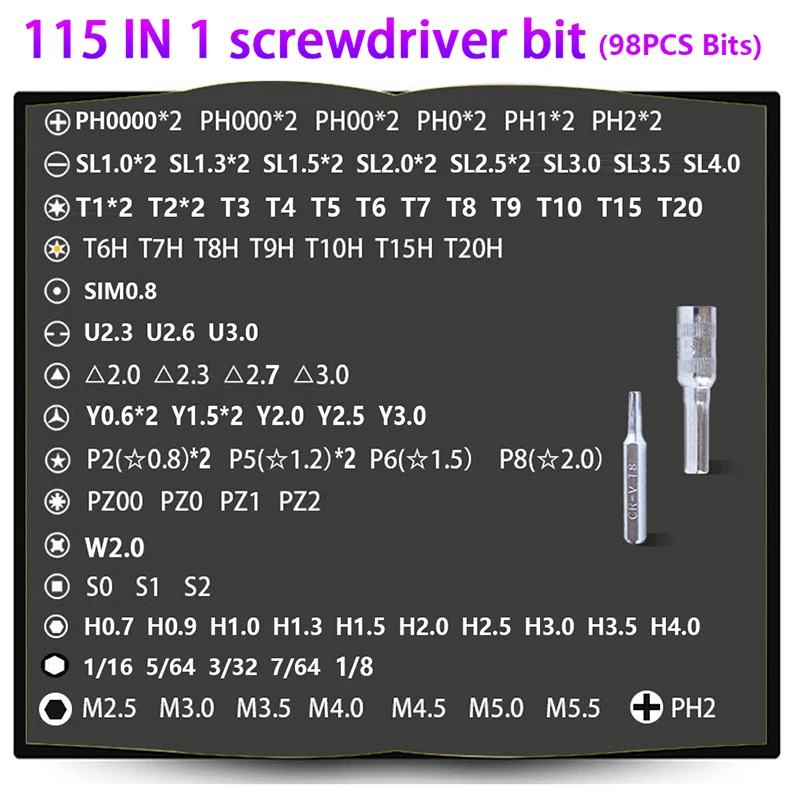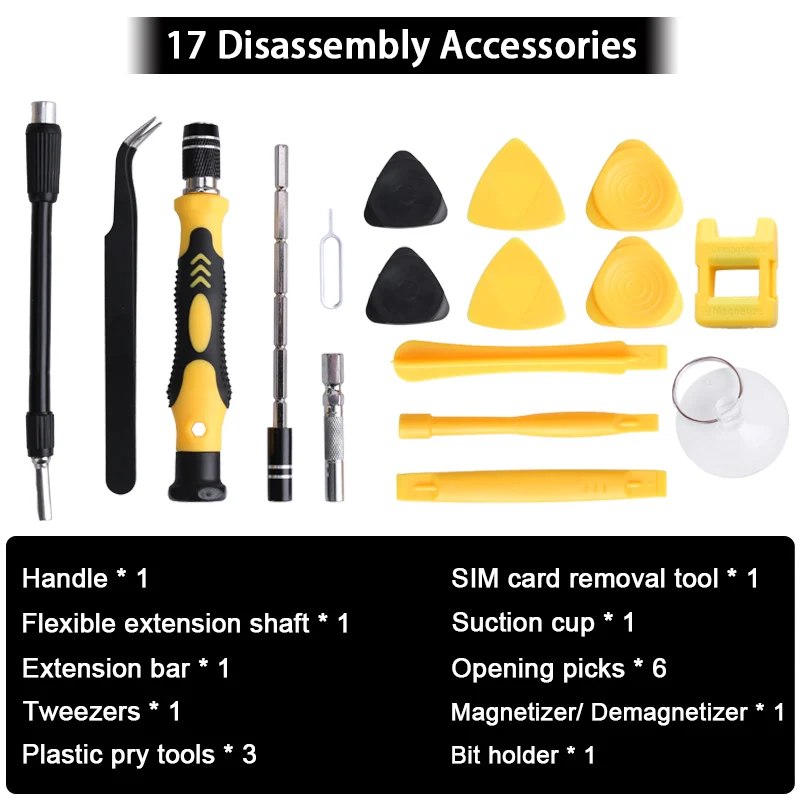 - Includes over 100 pieces with 98 screwdrivers and 17 disassembly accessories, catering to diverse repair needs for electronics and household devices.