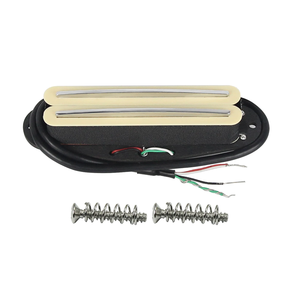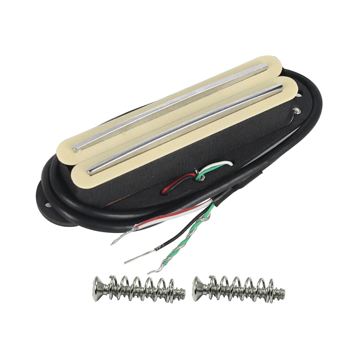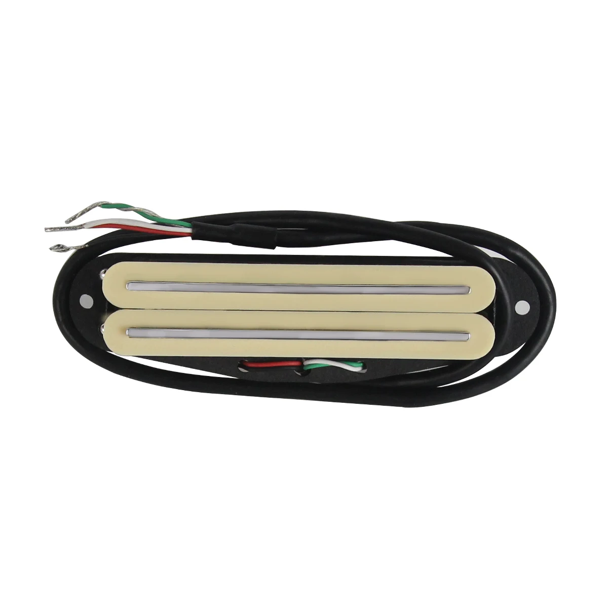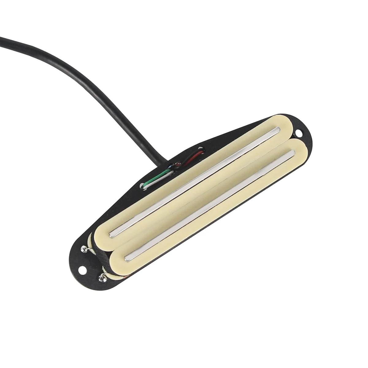 Elevate your guitar's sound with this visually striking yellow Alnico 5 mini dual rails humbucker pickup. Crafted for quality and performance, it features a sleek black baseplate with a slightly curved edge that perfectly integrates into standard single-coil slots. The dual rails coil covers are a warm beige, providing a refined contrast against the vibrant yellow finish, creating a modern yet timeless aesthetic. Designed for versatility, this pickup can be fitted in various positions—neck, middle, or bridge—enhancing your instrument’s tonal range. Fully wax sealed, it ensures clear sound with minimal noise or feedback. Installation is straightforward with included screws and springs, making it an ideal upgrade for ST/SQ style guitars or similar models.