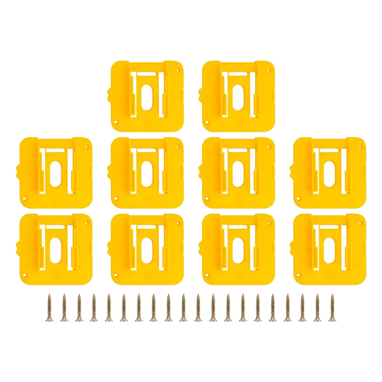 Organize your workspace with this durable ABS plastic battery mount holder, compatible with Dewalt 20V and 60V batteries including DCB200 and DCB203 models. Each lightweight holder, weighing only 38g, securely locks batteries in place with a central groove and supports versatile mounting options—upside down, sideways, or at any angle—using just 2 screws. Ideal for wall, shelf, or toolbox mounting, it helps keep batteries protected from damage, easily accessible, and well-organized. Available in packs of 1, 5, or 10 units, this product enhances efficiency and ensures your batteries are always ready for use.