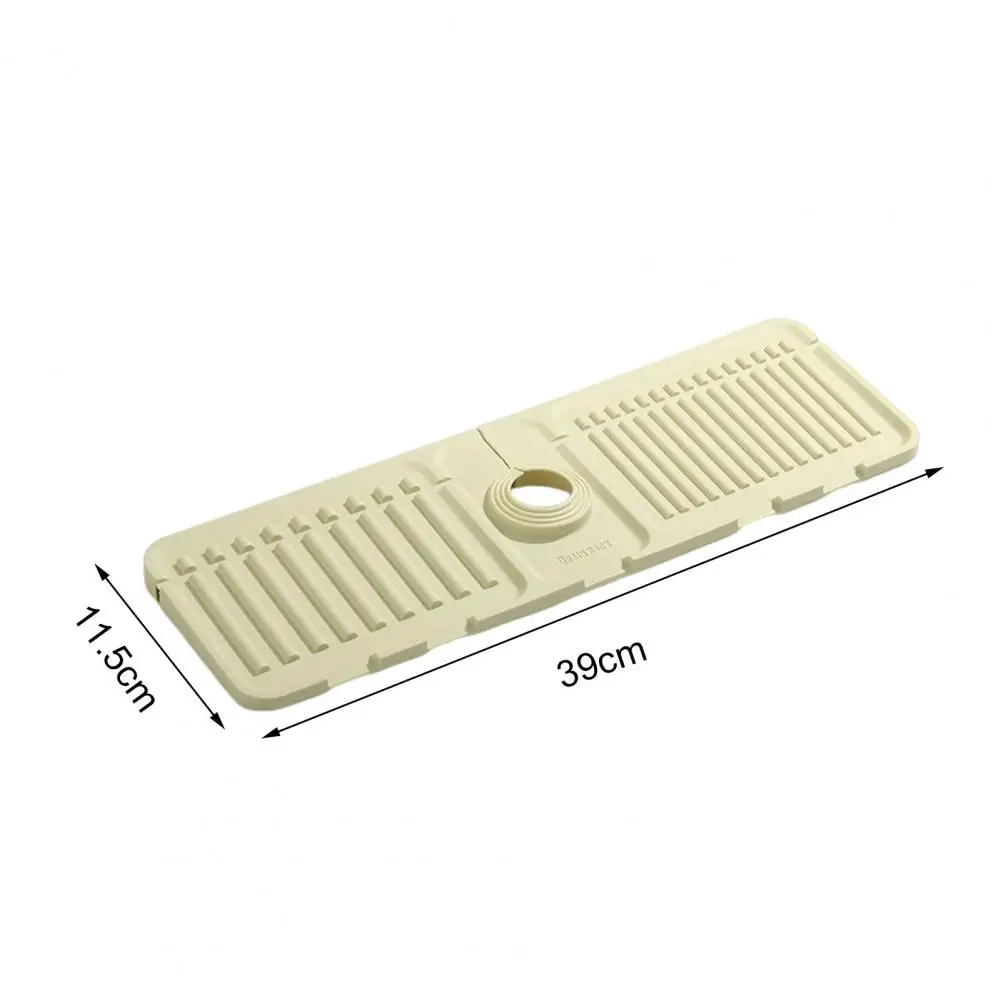 - Measures 39cm long and 11.5cm wide, fitting most standard faucets securely. Its size ensures comprehensive coverage for diverse sink setups, keeping water contained effectively. It measures approximately 45cm by 14cm in selected models.