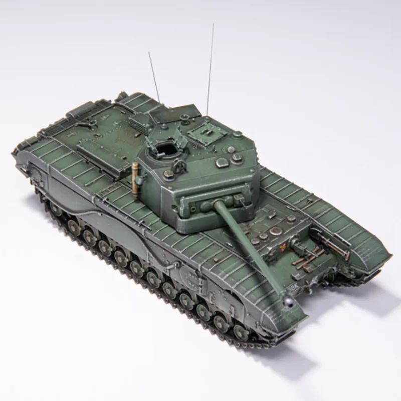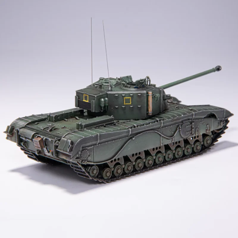 This highly detailed 1/72 scale British A43 tank model is crafted from resin as a static display piece, perfect for collectors and enthusiasts. Featuring a realistic military green finish labeled ‘A’, it showcases finely molded surface textures, including panel lines, hatches, and intricate equipment. The broad, rectangular chassis with detailed track assemblies—individual links, worn metallic wheels, and rubber tires—enhance its authentic appearance. No electronics or batteries are included, emphasizing purity of craftsmanship. Suitable for display, gifting, or collection purposes, this model offers a durable, realistic representation of a British A43 tank, designed for those aged 14 and above.