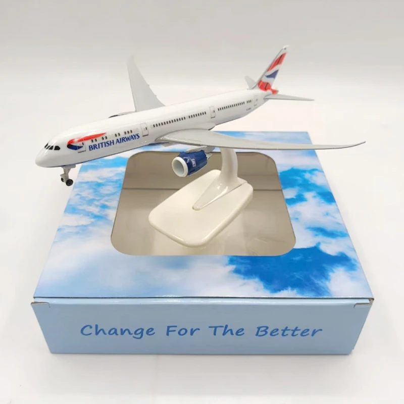 Enhance your collection or workspace with this stunning British Airways Boeing 787 model. Its detailed craftsmanship and vibrant liveries make it an eye-catching addition for any aviation enthusiast. Whether you're decorating your home, office, or showcasing your passion for air travel, this model offers a realistic and durable representation of the iconic aircraft. Don't miss the opportunity to own a high-quality, meticulously crafted miniature that embodies the spirit of aviation. Experience the joy of owning a beautifully detailed aircraft model today!