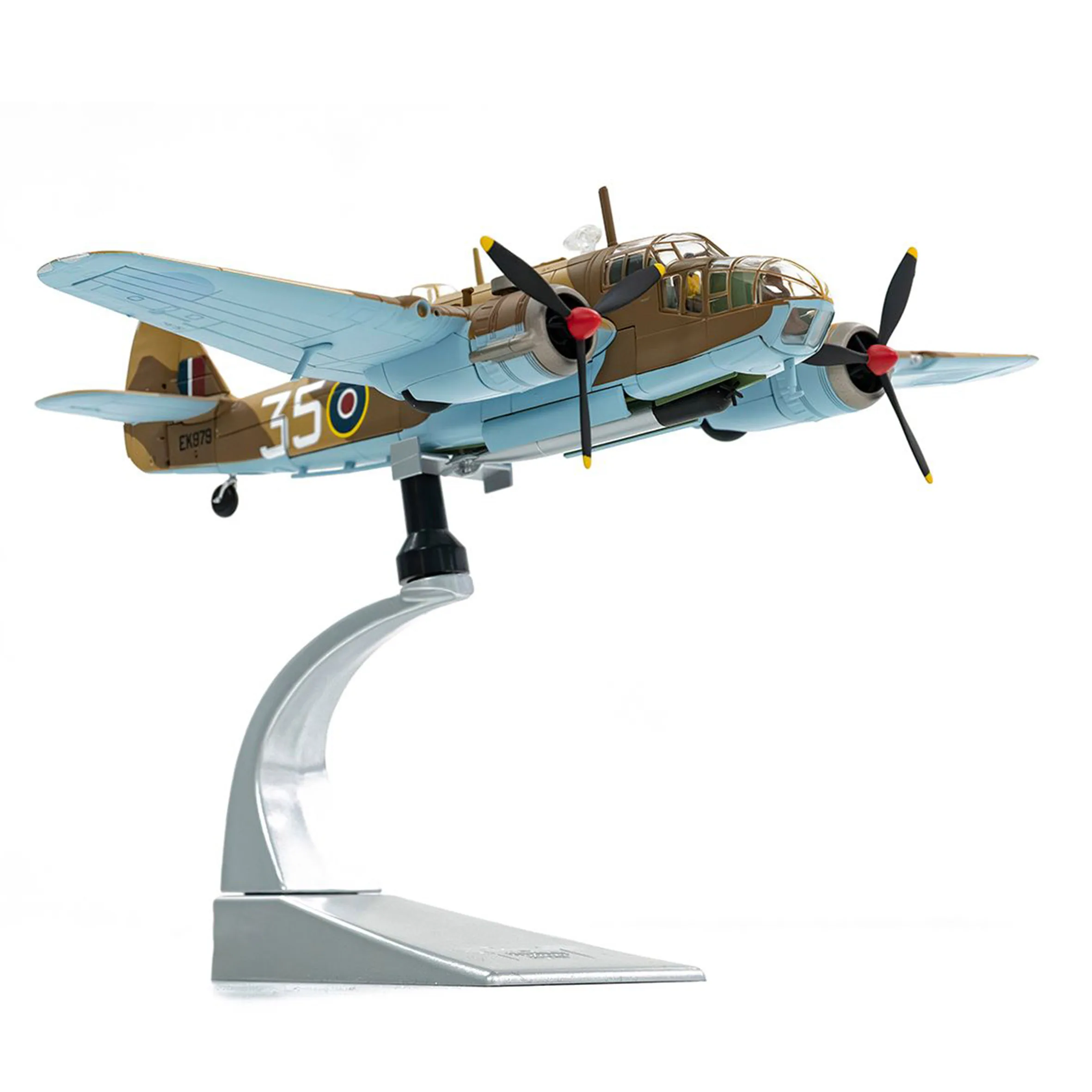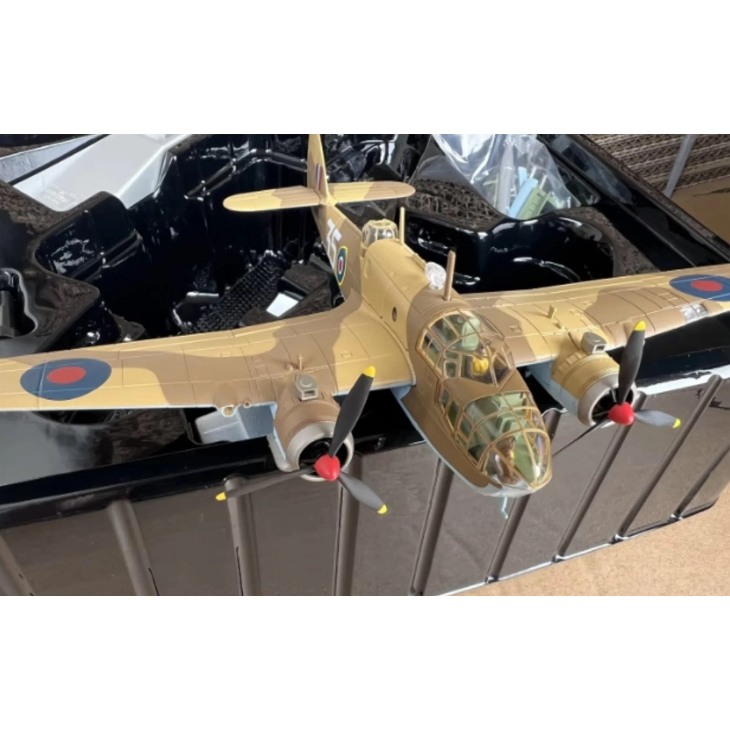 Get ready to elevate your collection with this stunning diecast model of the British Beaufort bomber, specifically the EK979 from 1944. Measuring approximately 17.5 cm in length, 25 cm in width, and 5 cm in height, this meticulously crafted model exhibits a captivating light brown color scheme accented with darker brown camouflage patterns. The vibrant circular roundels in blue, red, and yellow on the wings and fuselage showcase its British identity. Designed for adult collectors, this model does not require batteries, making it a purely displayable piece that commands attention in any setting.