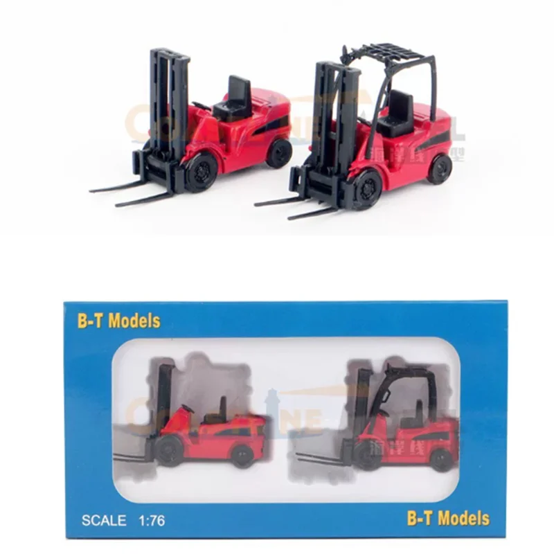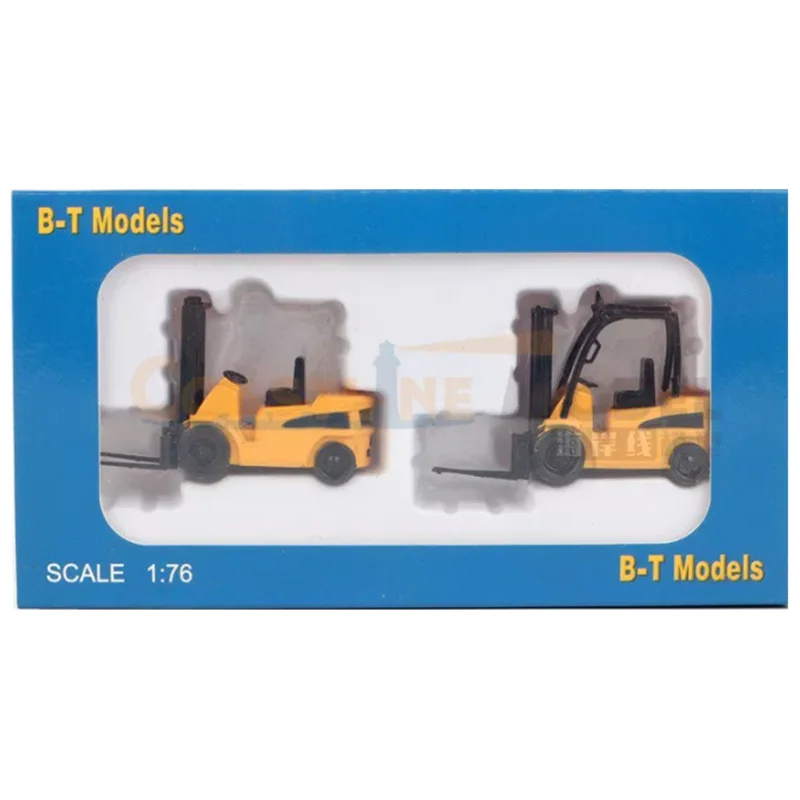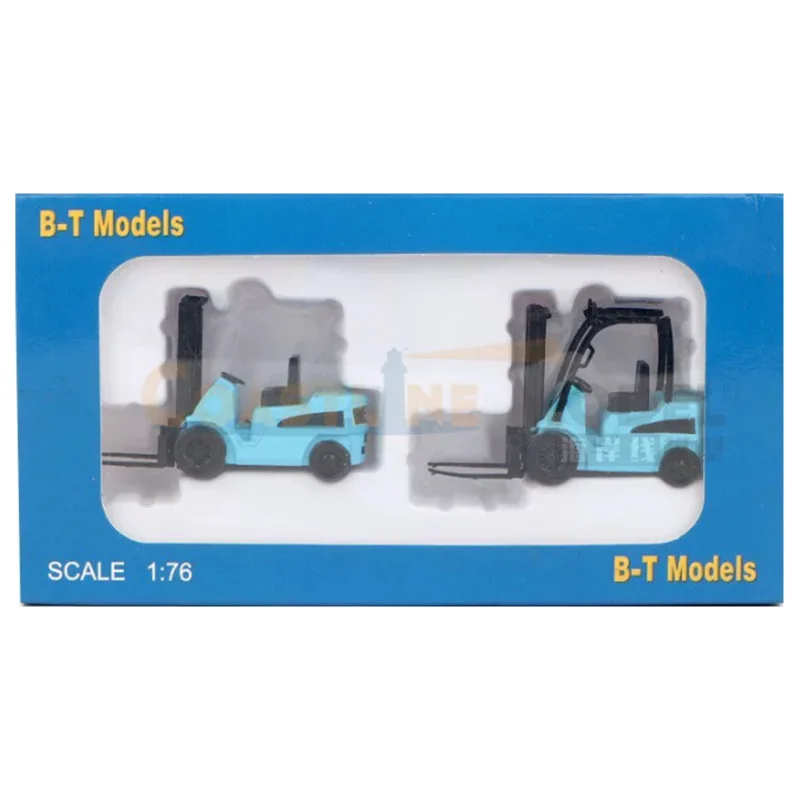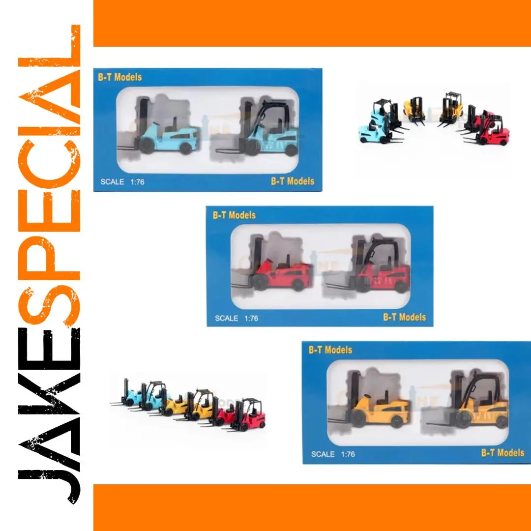 - Technical specifications include: approximate size based on 1/76 scale, vibrant color finish options, and meticulously detailed structural features mimicking actual forklifts.