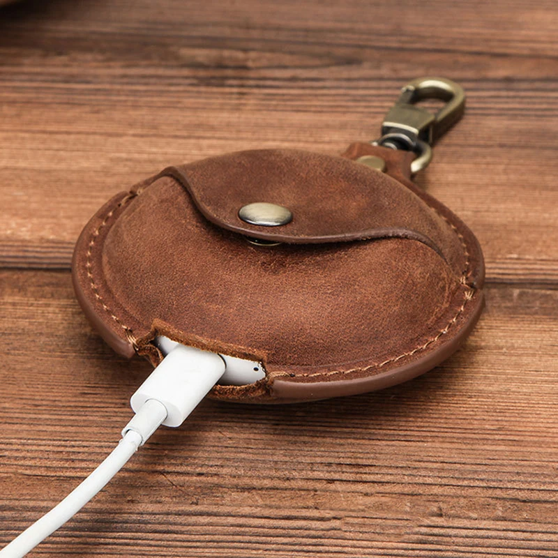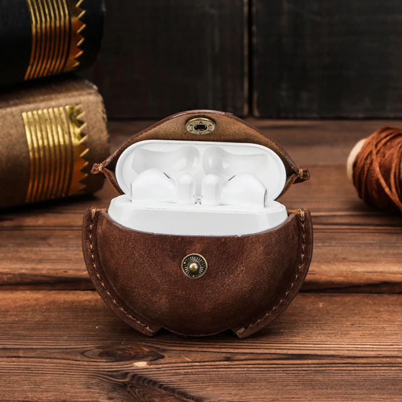 Enhance the protection and style of your Huawei FreeBuds 3 with this premium leather case, crafted from high-quality leather and available in rich Claret, Royal Blue, or Brown. Its compact, round design features meticulous stitching along the edges for durability and an elegant look. The case is equipped with a secure snap closure and a practical leather loop with a metallic ring and hook, allowing easy attachment to bags, keychains, or accessories. Perfectly designed for portability and everyday use, this sophisticated accessory offers a vintage-inspired aesthetic while providing reliable protection for your wireless earbuds.