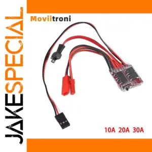 Experience precise control with this compact brushed ESC motor controller, designed for various radio-controlled models. Its sleek, minimalist design features a clear plastic casing that reveals the internal electronic components, highlighting a modern and technical aesthetic. Available in 10A, 20A, and 30A variants, it supports input voltages from 4.8V to 8.4V, making it compatible with 2S lithium batteries. The device operates at a high PWM frequency of 8KHz with a drive frequency of 2KHz, ensuring smooth, responsive performance. Its small footprint (30mm x 23mm x 6mm) makes it ideal for tight spaces within RC cars, boats, tanks, or mini-modification projects. Designed to deliver reliable forward, reverse, and brake functions, it sets a new standard in lightweight, functional RC electronic control systems.