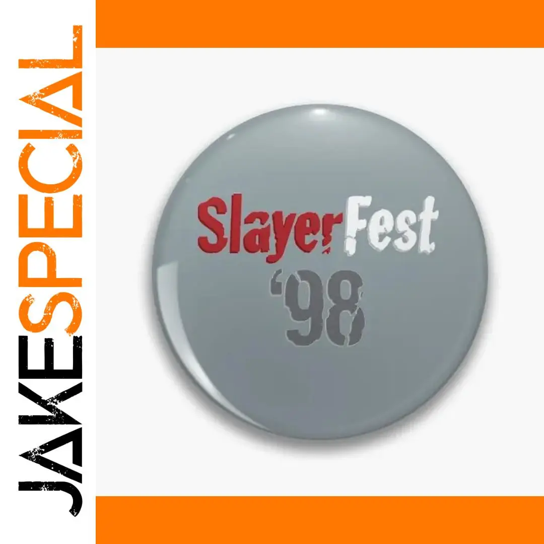 - Includes bold text with “Slayer” in red, “Fest” in vintage white, and large gray “'98” digits in a distressed stencil style, evoking a nostalgic and edgy 90s aesthetic.