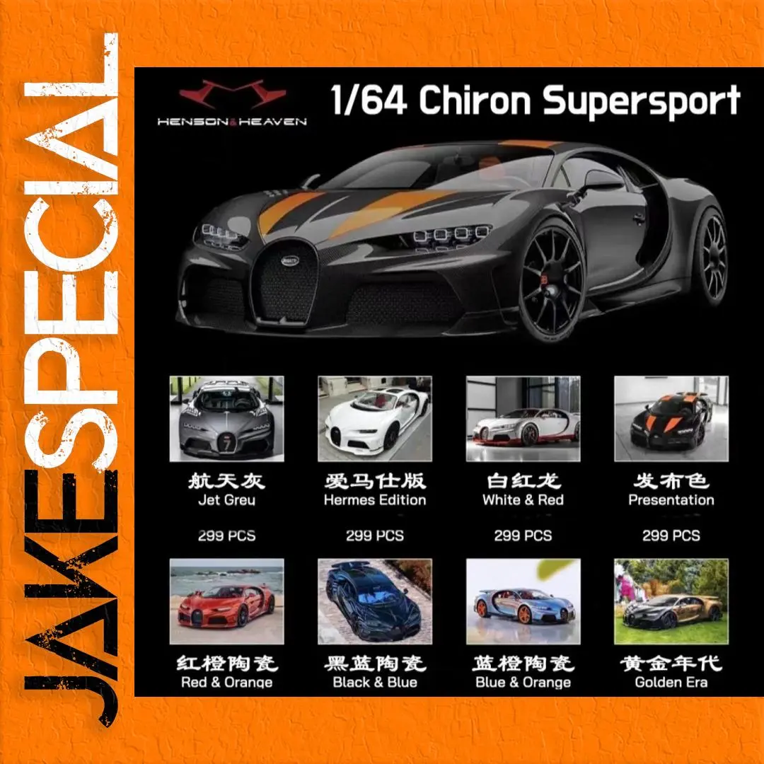 Introducing the stunning 1:64 scale model of the Bugatti Chiron Super Sport, expertly crafted from high-quality resin. This miniature car measures approximately 7 cm and features a sleek black exterior with striking orange accents. Its aerodynamic design is highlighted by detailed headlights and an intricately designed mesh grill, showcasing the vehicle’s luxury. The black wheels are complemented by visible red brake calipers, enhancing the sporty aesthetic, while a signature rear spoiler adds to its performance-focused look. This non-electric, diecast ornament is perfect for display, making it a must-have for car enthusiasts and collectors alike.