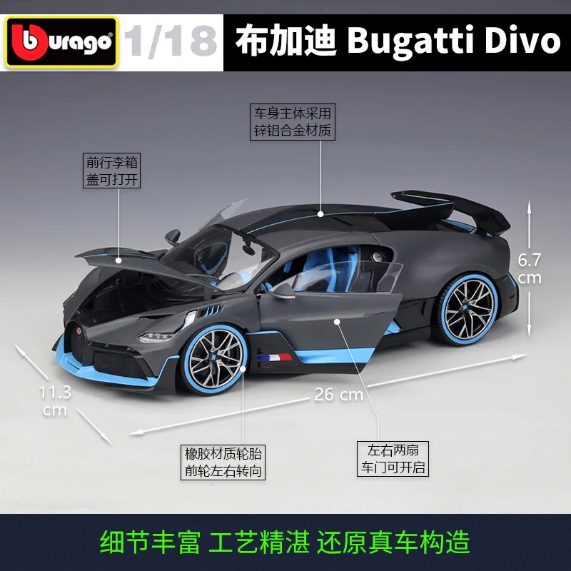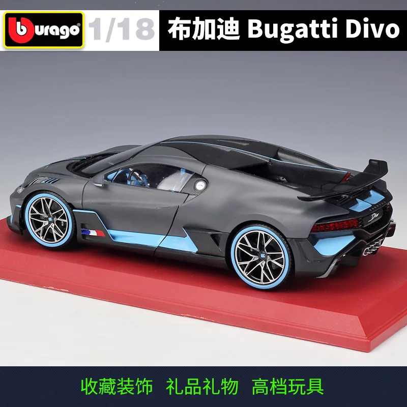 - This 1:18 scale diecast model is crafted from durable metal, accurately representing the iconic Bugatti Divo's sleek, aerodynamic design for collectors aged 18 and above.