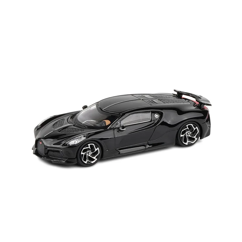 Imagine owning a stunning miniature version of the legendary Bugatti La Voiture Noire, meticulously crafted to reflect the elegance and power of the original. This 1:64 scale collectible captures the sleek, aerodynamic silhouette with a high-gloss, polished finish, emphasizing luxury and performance. Its carefully detailed design includes textured grille patterns, sharply styled headlights with clear lenses, and engraved vents, all adding to the realism. The side profile exhibits finely crafted door lines, side mirrors, and wheel arches that house realistic black rims with silver accents. The textured rubber tires enhance authenticity, while the rear features aerodynamic elements like a diffuser, exhaust outlets, and stylized tail lights. Perfect for display or gifting, this model embodies craftsmanship and sophistication in every detail.