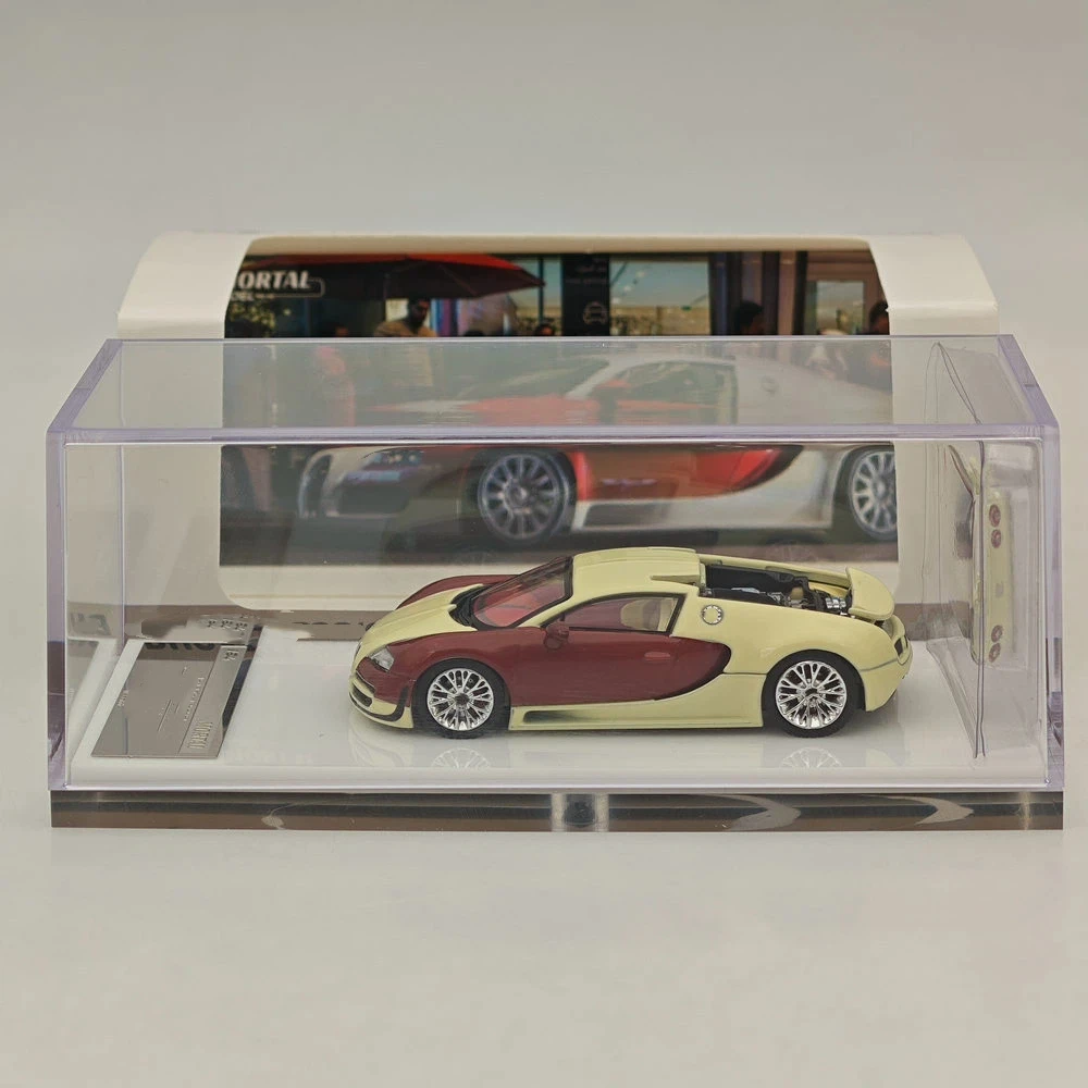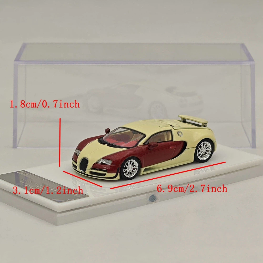 Experience the thrill of owning a highly detailed miniature of the iconic Bugatti Veyron with this exquisite collectible model. Measuring just 6.9 cm long, 3.1 cm wide, and 1.8 cm high, this model showcases a sleek, aerodynamic design that captures the essence of the real supercar. Crafted from a combination of diecast metal and durable plastic, it boasts a realistic metallic finish in elegant beige or cream, accented with bold maroon or dark red details on the roof, sides, and front. The precision craftsmanship highlights smooth, sculpted curves, multi-spoke rims, and transparent windows revealing a vibrant interior. Perfect for display or as a hobby collectible, this model brings luxury and craftsmanship right into your collection.