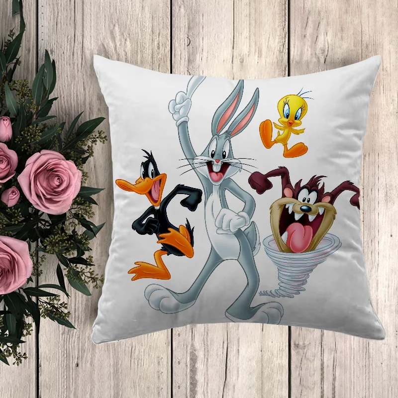 Experience the charming transformation of your living space with this Bugs Bunny decorative pillow cover. Measuring 40×40 cm, it's perfectly sized to enhance your sofa, bed, or even your car interior, offering a playful and cozy aesthetic. Imagine snuggling up with this delightful pillow while enjoying your favorite movie or adding a fun touch to your decor. Each glance at this whimsical piece will make you smile, as it brings the beloved character into your home. Create an inviting atmosphere that reflects your unique style and passion for classic animation.
