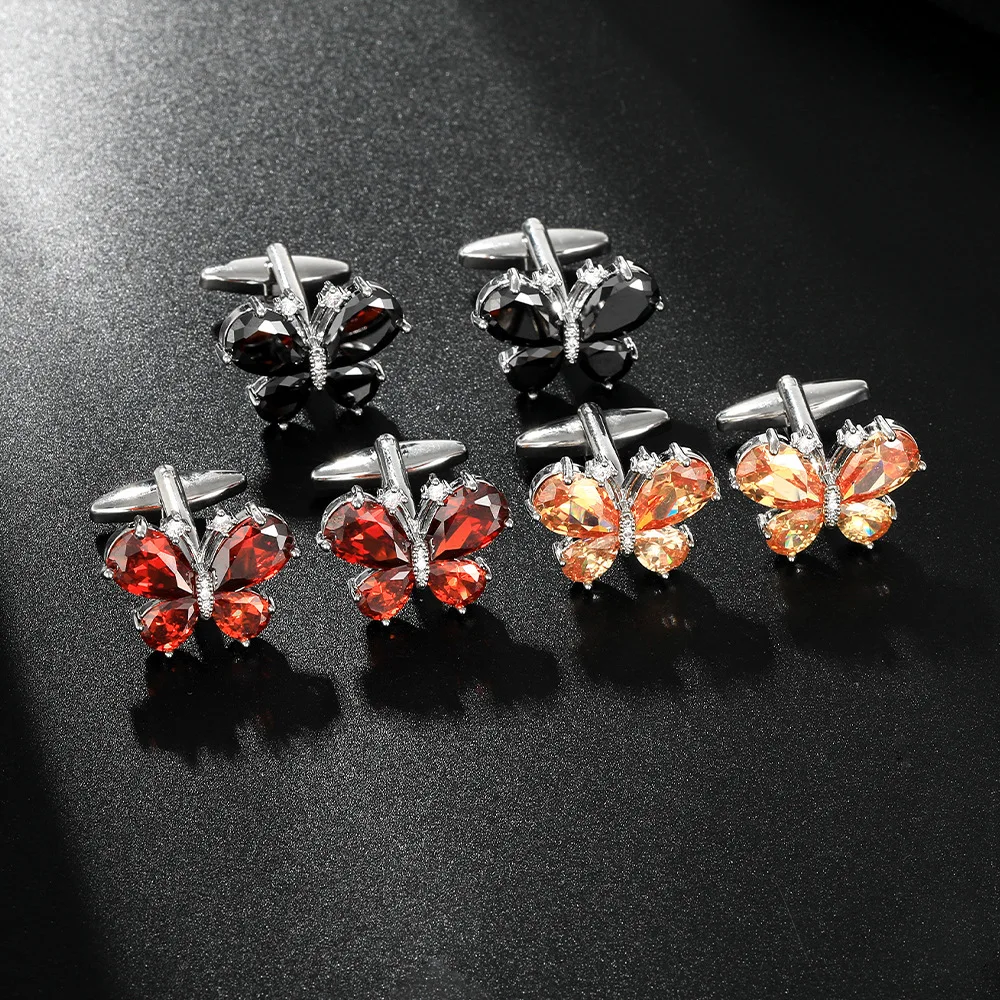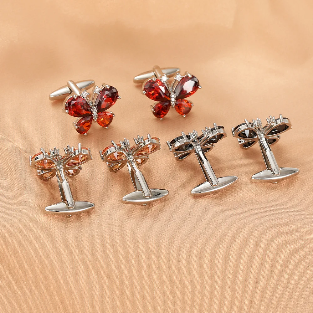 Elevate your style with these versatile alloy cufflinks featuring a detailed butterfly motif in three striking gemstone colors: white, black, and green. Each pair showcases faceted zircon inlays that catch the light, complemented by a polished silver finish for an elegant, reflective look. Suitable for both men and women, these cufflinks measure precisely to fit various sizes, with a size deviation of 1-3mm. Perfect for a range of fashion themes from retro to minimalist, they’re ideal for dressing up jackets, backpacks, hats, or DIY projects. Crafted for quality and tested before delivery, these distinctive accessories add a touch of sophistication and trendy flair to any occasion.