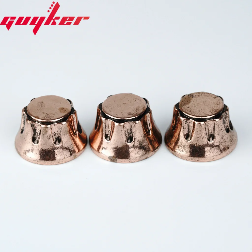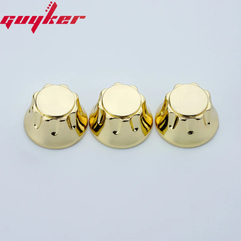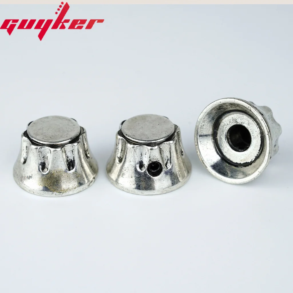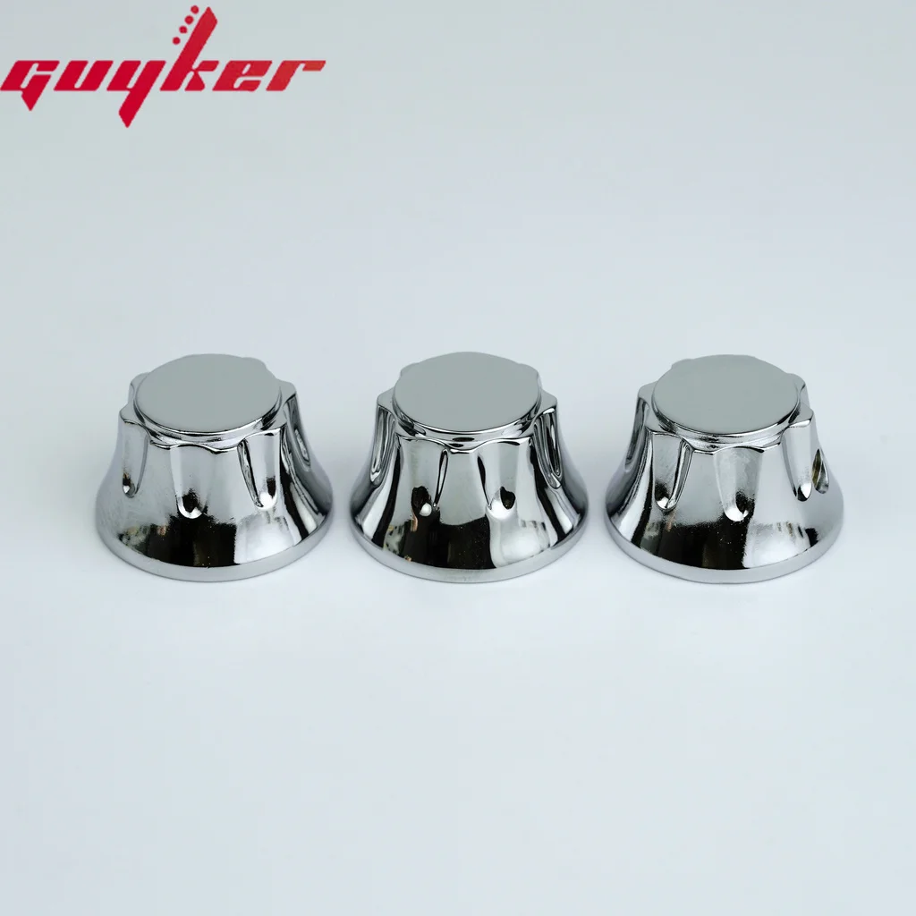 Enhance your electric guitar or bass with this set of three butterfly-style control knobs crafted from durable zinc alloy. Each knob features a 6mm inner diameter, ensuring compatibility with standard potentiometer shafts. Available in sleek black, warm brown, reflective chrome, luxurious gold, and vintage old-style finishes, these knobs add a stylish and distinctive look to any instrument. Their intricate scalloped edges and rounded, slightly domed top create an elegant aesthetic, while the variety of finishes allows for personalized customization. Designed for easy installation and long-lasting use, these knobs are the perfect choice for musicians seeking a refined, versatile upgrade to their instrument’s control interface.