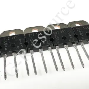 Experience reliable switching performance with the Takin Chip BUZ385 N-channel MOSFET, housed in a durable TO-218 package. This high-quality component features a maximum drain-source voltage of 500V and a continuous drain current of 9A, making it ideal for power switching applications. Its sleek, black rectangular housing with white printed markings offers a modern, industrial look, complemented by a mounting hole near the top edge and three flat, silver-colored leads for easy integration into your electronic projects. Designed for precision and efficiency, this new MOSFET ensures robust performance in your circuit designs.