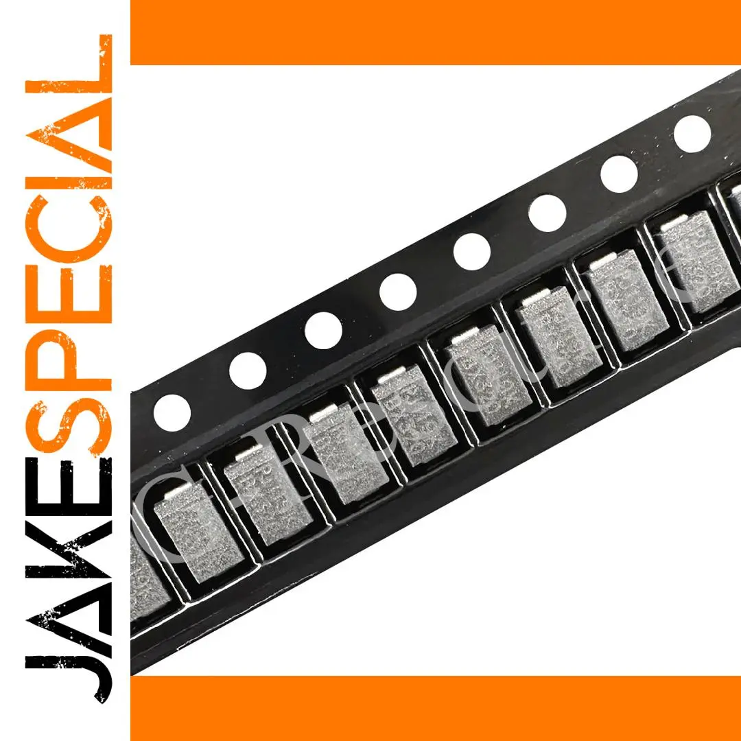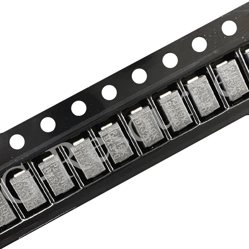 Experience reliable performance with this set of ten BX320 Schottky diodes, perfect for high-efficiency electronic projects. Each diode features a sleek, rectangular SMA package with a metallic silver finish, exuding a modern, industrial aesthetic. The organized black carrier tape enhances handling and assembly precision while highlighting the components' compact, clean design. These diodes are designed for precision, with flat, flat surfaces, and engraved markings that denote their model number and manufacturing identifiers. Their uniformity and clarity in appearance reflect their high-quality, unused condition, making them an ideal choice for circuit maintenance or new assembly. Their technical specifications ensure efficient power management in a variety of electronic systems.