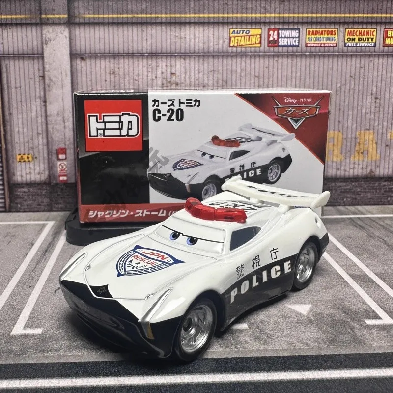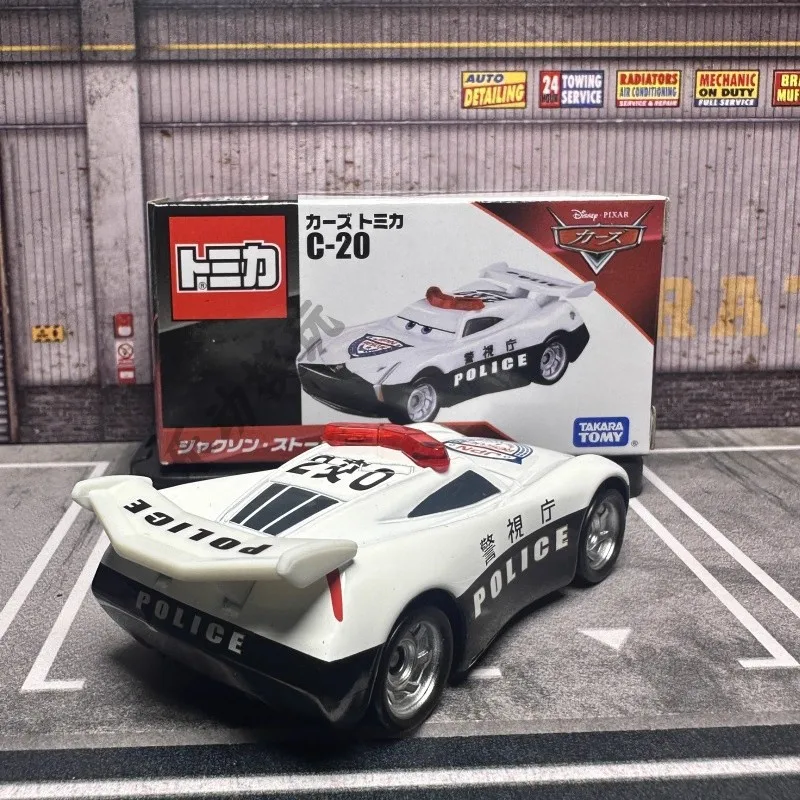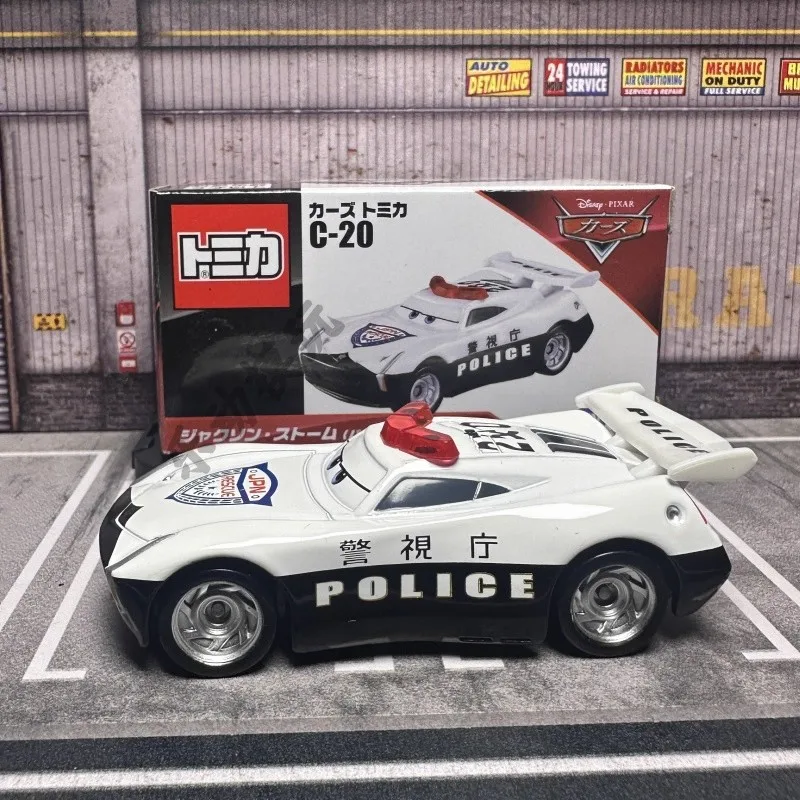 Immerse yourself in the thrill of collecting with this highly detailed diecast metal model of the C-20 Jackon Storm Police Car from Disney Pixar Cars. Crafted with precision, this 1:64 scale replica captures the sleek, aerodynamic body, bold red, white, and black color scheme, and signature markings. The car features realistic wheel rims, a prominent red siren on top, and the word “POLICE” visible on its side, providing an authentic look. Perfect for display or as a collectible gift, this model is made of durable metal, free of harmful chemicals, and designed for enthusiasts aged 14 and older. Bring a piece of the racing world into your collection, and enjoy the quality craftsmanship that makes each detail stand out.