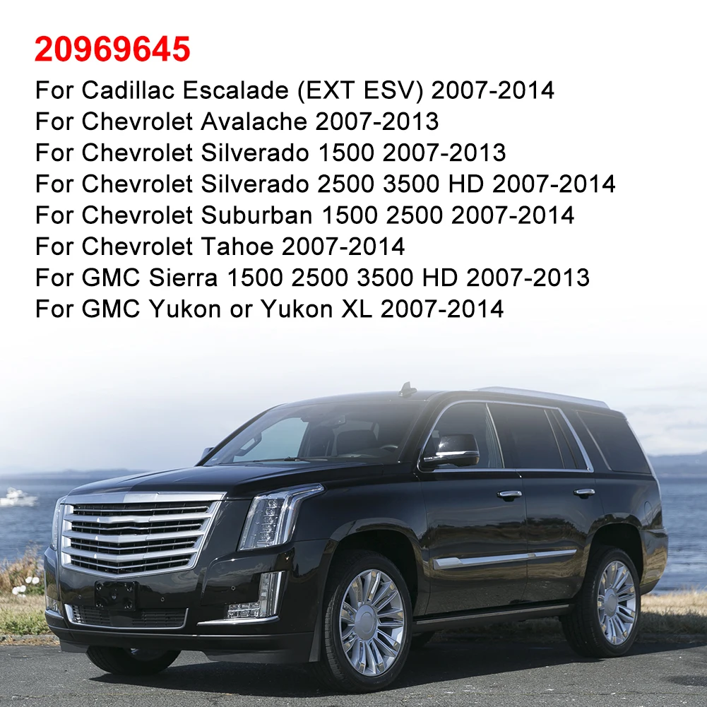 - Precisely engineered for the front left and right sides of Cadillac Escalade ESV (2007-2014), with compatibility for Chevy Silverado, Suburban, and Tahoe models from the same period.