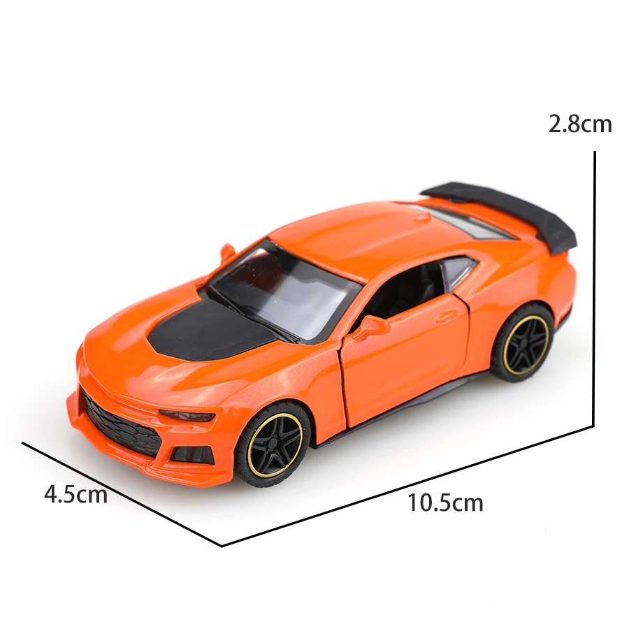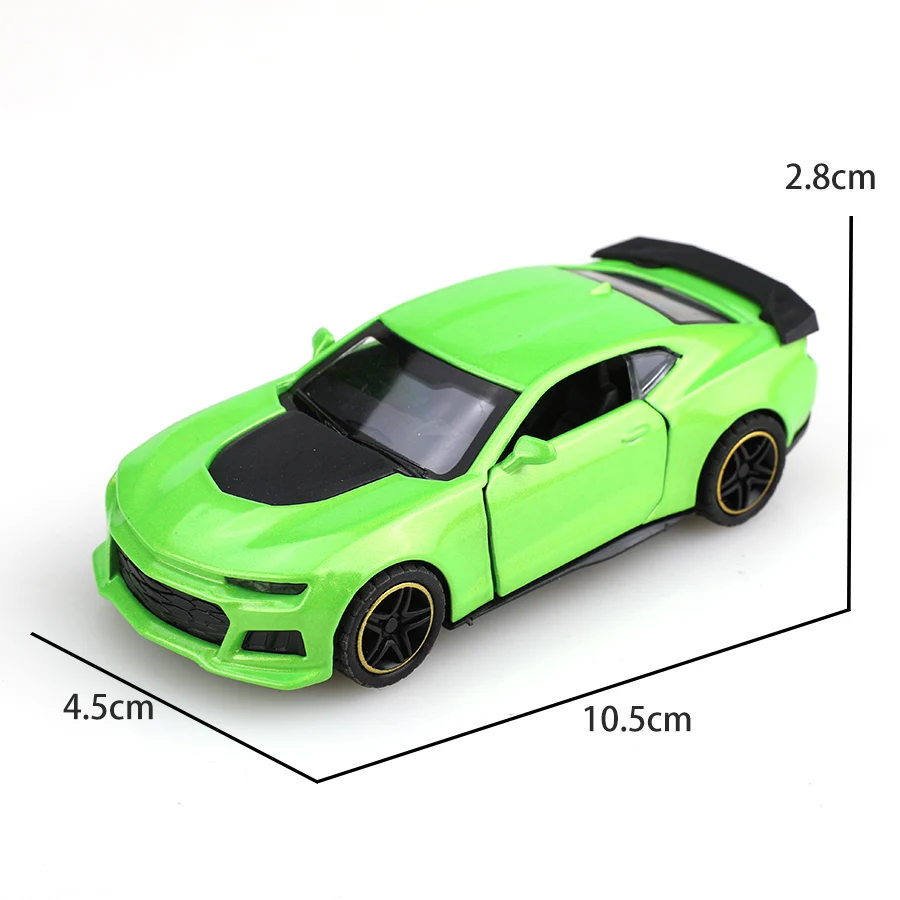 Experience the thrill of owning this stunning 1:43 scale Camaro Bumblebee racing car. Crafted from durable alloy with a glossy, metallic finish, this detailed replica captures the sporty, aggressive essence of the original vehicle. Its sleek, aerodynamic shape features rounded contours and sharp lines, highlighted by contrasting black accents on the hood, grille, and spoiler. The black multi-spoke wheels with a thin yellow trim add to its dynamic appearance. Whether displayed as a collector's item or enjoyed as a childhood toy, this model offers a realistic and eye-catching aesthetic. The compact size makes it perfect for display on shelves or desks, evoking speed and power. Its vivid color options—yellow, orange, and green—ensure it suits every enthusiast's style and collection.