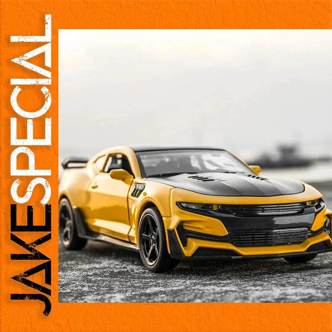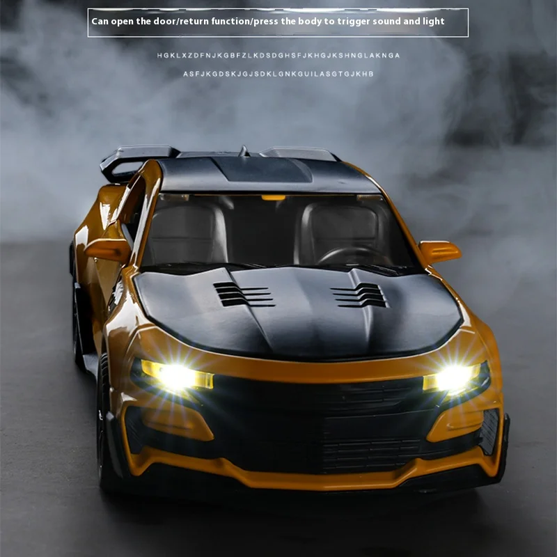 Elevate your space with this striking sports car interior decoration ornament, featuring a vibrant yellow body adorned with sleek matte black accents on the hood, roof, and front grille. Crafted from durable zinc alloy, this model weighs 0.42 kg and showcases intricate detailing, including sharp lines, a sculpted front bumper with air intakes, and aggressive headlights. The elegant multi-spoke black wheels and realistic textured tires contribute to its sporty charm, while well-defined side mirrors and air vents enhance the performance aesthetic. Perfect for car enthusiasts and collectors, this stylish piece makes a fantastic addition to any dashboard.