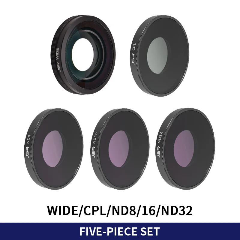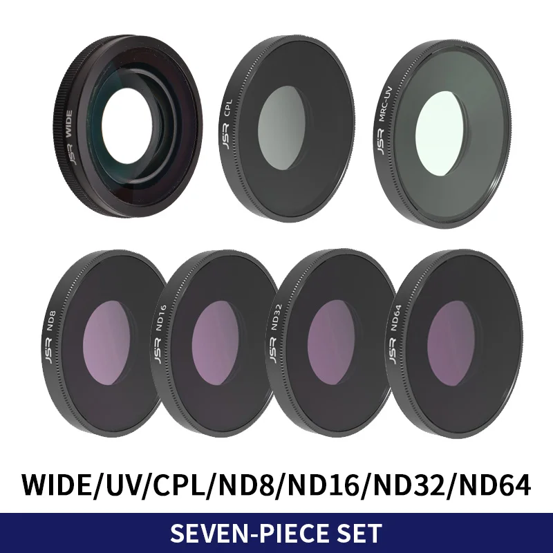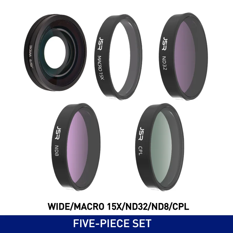 Enhance your DJI Osmo Action 4 and 5 Pro cameras with this premium set of optical glass filters, including macro 15x, wide-angle, CPL, and ND filters. Featuring 5-in-1 and 7-in-1 options labeled ‘5IN1-A,’ ‘5IN1-B,’ ‘7IN1,’ and ‘WIDE,’ these high-quality filters are crafted from durable optical glass with anti-scratch coatings for long-lasting performance. The sleek, circular design with smooth black rims ensures a snug fit and professional appearance, allowing you to capture stunning, high-definition footage with improved control over light and focus. Elevate your videography and photography with this versatile filter set designed specifically for DJI Osmo Action cameras.