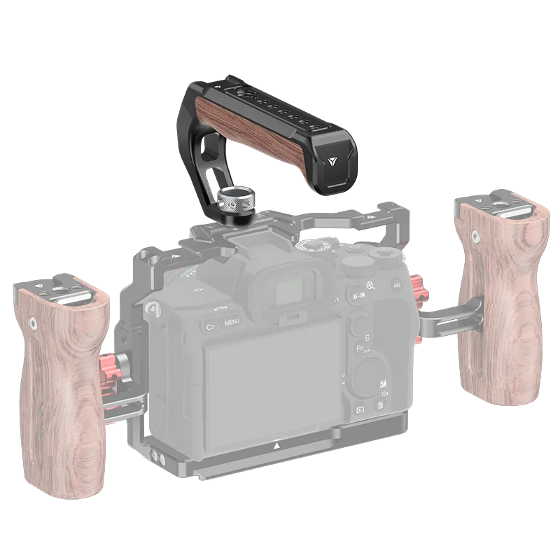 This lightweight camera stabilization handle set features a sleek black aluminum alloy top handle with a 1/4″ threaded screw, cold shoe mount, and 3/8″ Arri locating hole for external equipment. The ergonomic side handle boasts a warm wooden grip with adjustable sliding grooves, along with cold shoe and threaded holes for accessories. Weighing approximately 160 grams, these versatile handles are compatible with most DSLR cages, making them ideal for vlogging, live streaming, and professional filming. Their minimalist, modern design offers durability and comfort, providing a customizable grip solution to enhance stability and accessibility during your shoots.