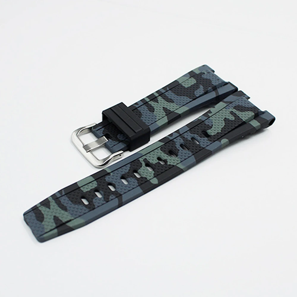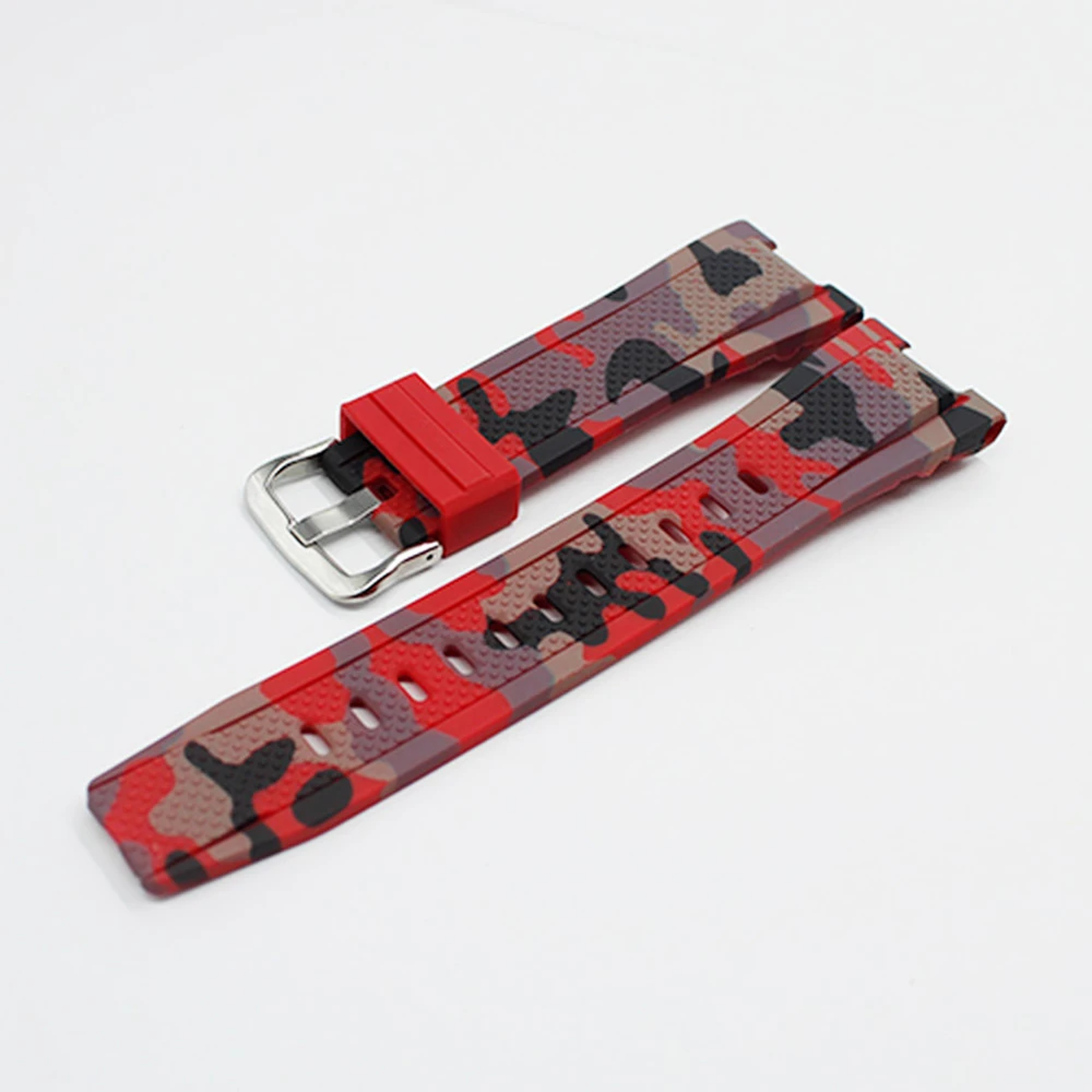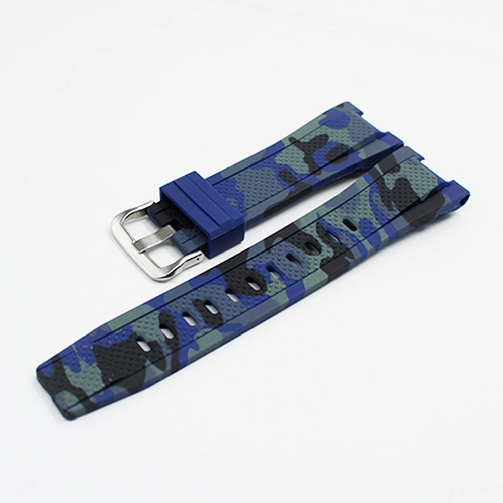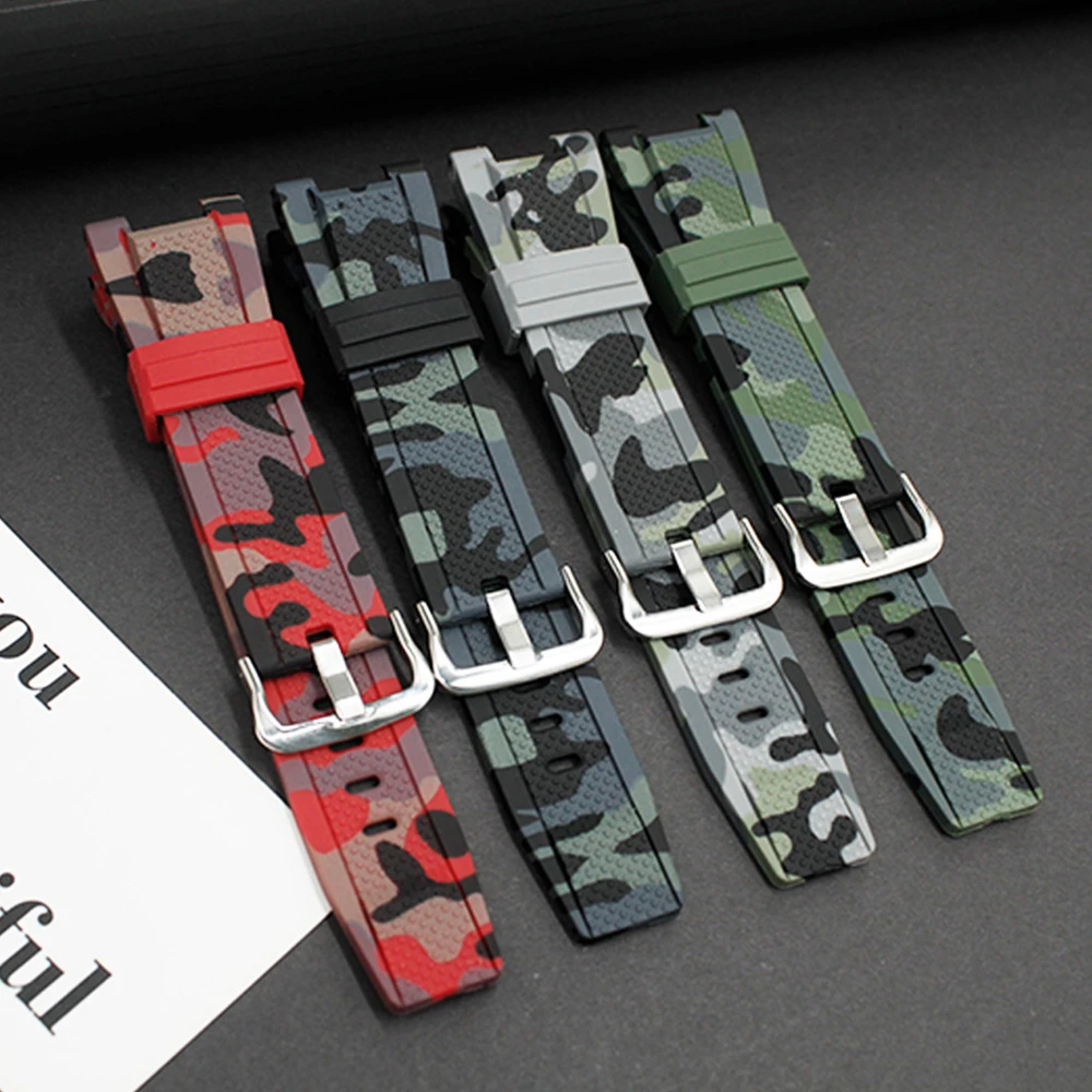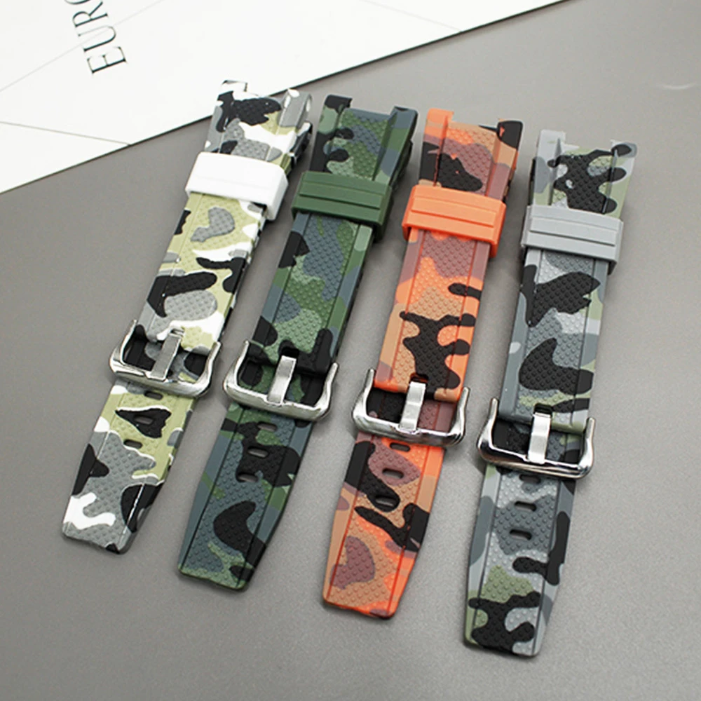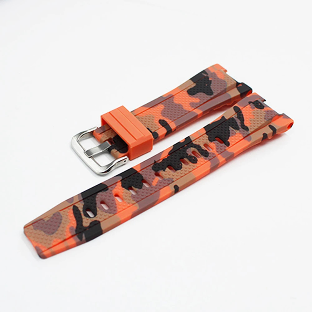 Upgrade your watch with this versatile camouflage silicone strap, compatible with GST-W300, GST-400G, and B100 models. Crafted from soft, durable silicone, it offers a textured grip and features vibrant or muted camouflage patterns in black, silver, blue, brown, green, gray, orange, red, and white. The adjustable buckle, available in black or silver, ensures a snug fit for active lifestyles. Designed for sport and passometer functions, this strap provides a rugged yet comfortable style that enhances outdoor adventures or casual wear. Easy to install with included tools, it’s the perfect upgrade to personalize and elevate your compatible watch.