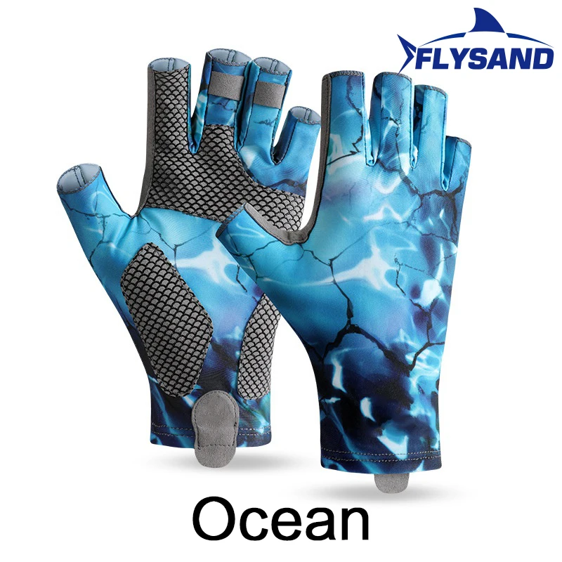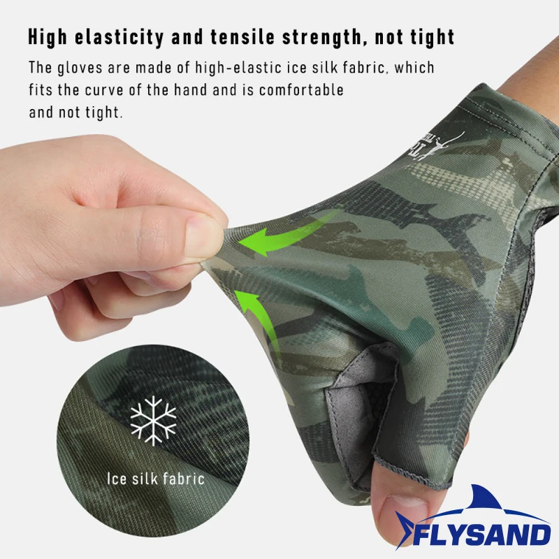 Experience ultimate comfort and protection with these high-elasticity camouflage UV fishing gloves. Designed for outdoor enthusiasts, they blend style and functionality seamlessly. Crafted from advanced ice silk and microfiber, these gloves are lightweight, breathable, and quick-drying, ensuring freshness throughout your activity. The ergonomic synthetic leather palms and reinforced silicone grip points enhance control, making handling fishing rods, paddles, and hiking poles effortless. The fingerless design provides excellent dexterity, while a practical pull tab allows easy donning and removal—even when wet. Available in vibrant blue, sleek white, ocean, and rugged camouflage, these gloves combine durability with a tactical, outdoor aesthetic. Perfect for water sports, fishing, cycling, or hiking, they are your ideal outdoor companion.