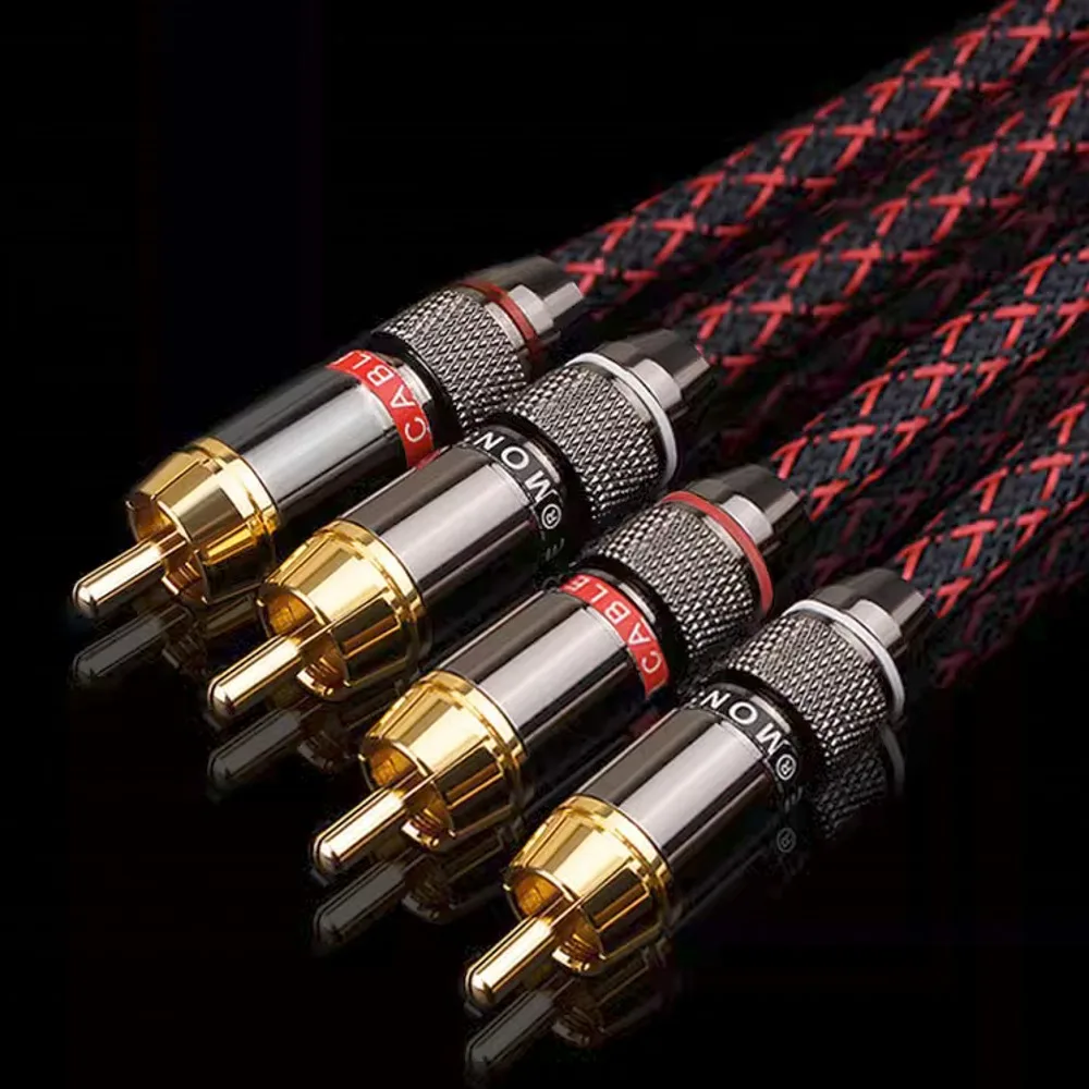 Discover unparalleled audio quality with this Canare RCA audio cable, designed specifically for home audio and video interconnect applications. The cable features male RCA connectors at both ends, enhanced with gold plating for optimal conductivity and durability. Its striking black and red woven pattern not only elevates aesthetic appeal but also offers exceptional flexibility and resilience. Constructed with 40 ultra-fine copper wires, this cable ensures excellent performance and minimal signal loss, making it a perfect choice for connecting your amplifiers, televisions, and other audio devices.