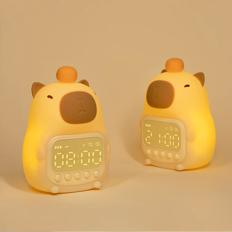Transform your child's bedtime routine into a delightful experience with this adorable capybara night light and alarm clock. Its soft, warm glow combined with practical features makes it a must-have for peaceful nights and cheerful mornings. Perfect for gifting or personal use, this device ensures comfort, safety, and style. Imagine the joy of seeing your little one fall asleep peacefully, knowing the room is gently illuminated and the time is clearly displayed. Make your space more inviting and functional—don't miss out on adding this lovable companion to your home today!