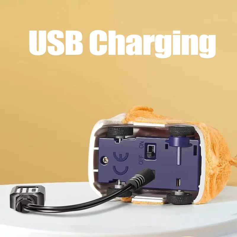 This playful RC car watch features a whimsical plush design in capybara and rabbit styles, crafted from soft, fuzzy orange-brown fabric resembling animal fur. The adorable face includes closed black embroidered eyes, darker brown patches, a dark brown oval nose, and a transparent domed cover. Equipped with a 2.4 GHz remote control, it delivers interactive racing fun suitable for ages 6-12 and 14+. Made from durable plastic, it comes ready to use without assembly, includes a USB cable for charging or data transfer, and is CE certified. The compact, lightweight design makes this cheerful wrist toy perfect for children and collectors seeking playful, functional accessories.