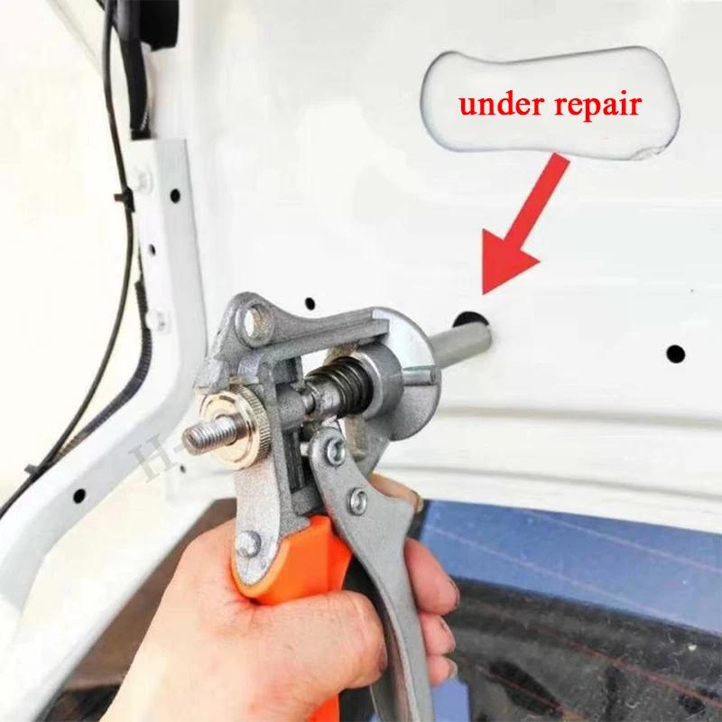 Experience efficient paintless dent repair with this durable car fender edge tool featuring a sleek silver-gray metal body and vibrant orange plastic handle. Designed as flat hole pliers, it allows for seamless repair of screw holes, sheet metal shaping, and bump or pit corrections on vehicle bodies. Its sturdy construction ensures precise manipulation, making dent removal straightforward and effective. The ergonomic handle provides comfortable grip and control during use, while the compact design fits easily into your toolkit. Ideal for automotive dent repair professionals or enthusiasts, this versatile tool combines resilience and precision, helping you restore vehicle surfaces to their original smooth, flawless condition with ease.