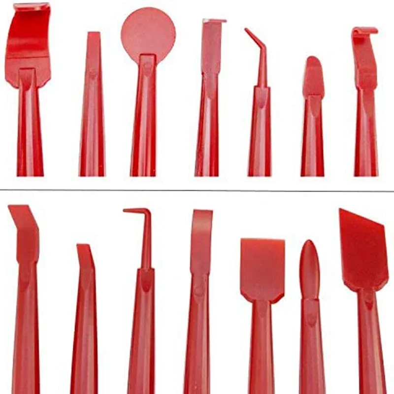 - Each tool features ergonomic shapes such as flat, curved, pointed, and L-shaped, ensuring comfortable handling and precise application in hard-to-reach areas.