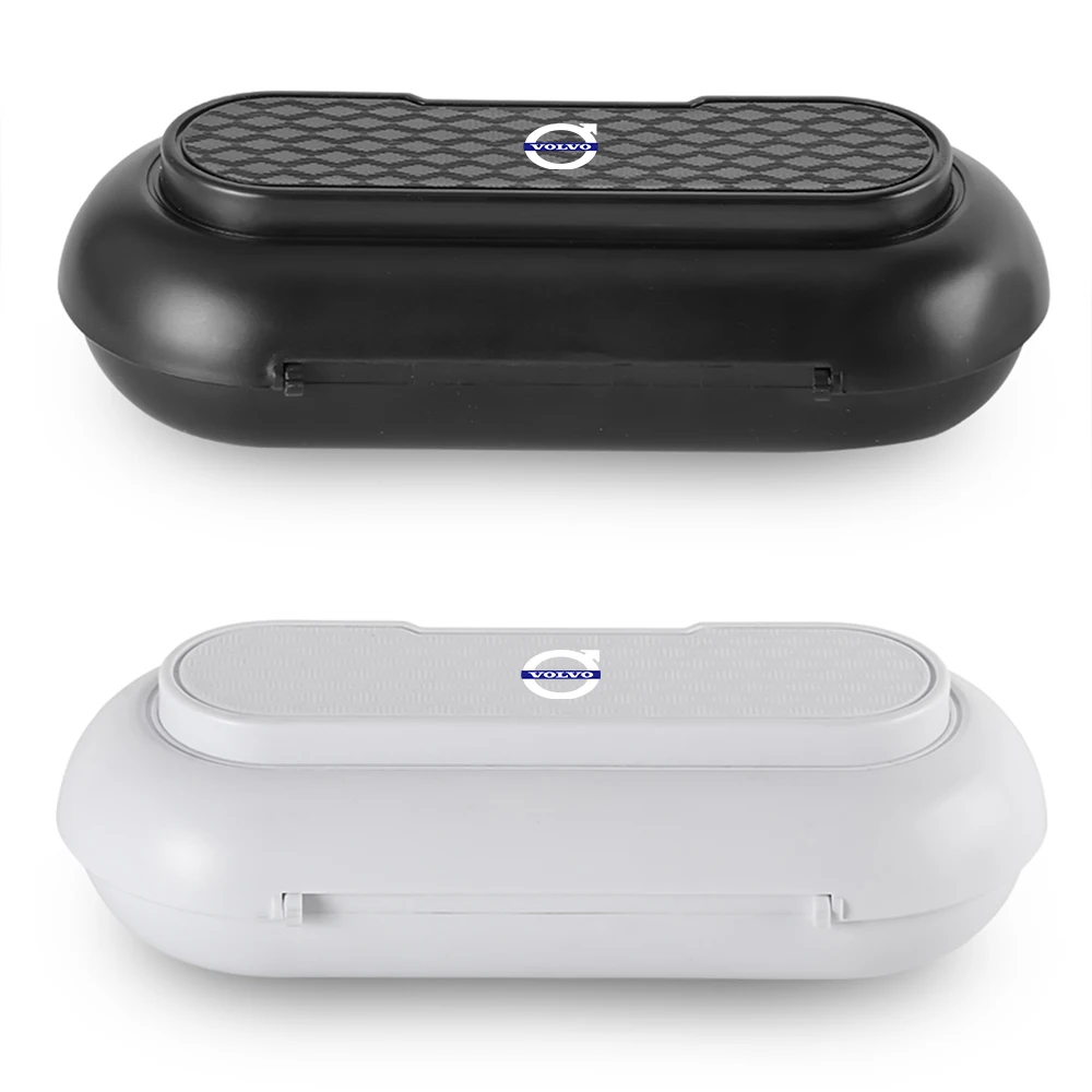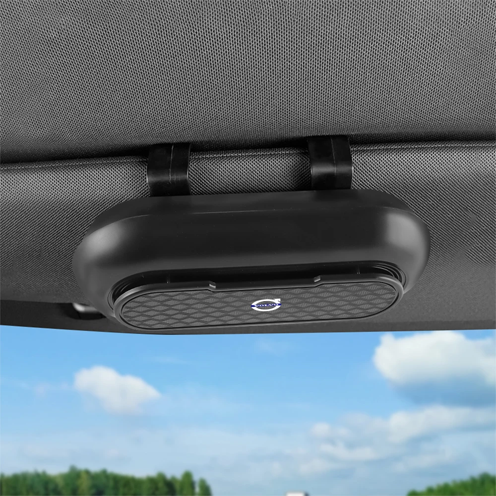 Imagine effortlessly keeping your sunglasses, ID cards, and small essentials within arm's reach classy and organized. This sleek, curved, rectangular case is designed to blend seamlessly into your car's interior, adding a touch of modern sophistication. Its textured diamond-patterned surface offers a secure grip, while the circular logo in blue and white adds subtle branding elegance. Available in black and white, this durable plastic or composite case is specifically tailored for vehicles like R Design, T6 AWD, C30, C40, C50, C70, S40, S60, S70, S80, S90, V40, V50, V60, V70, V90, XC30, XC40, XC60, XC70, and XC90. Its minimalist design makes organization stylish and accessible, transforming your driving experience.