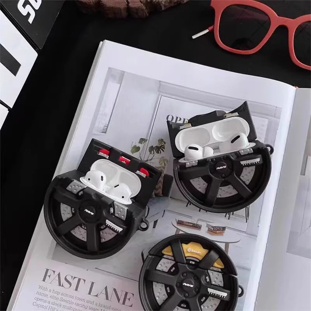 Elevate your AirPods experience with this Creative 3D Car Tires Shape Case, a perfect blend of sporty aesthetics and functionality. Designed to resemble authentic car tires, this case features a glossy black finish accented with vibrant “wheel red” brake calipers and metallic studs, reflecting your passion for automotive culture. Made from durable TPU and silicone, it offers excellent protection against drops and scratches. The convenient magnetic flip cover allows for easy one-handed access to your AirPods, while the climbing buckle ensures you can carry it effortlessly on outdoor adventures. Transform your listening experience with this unique protective case today!