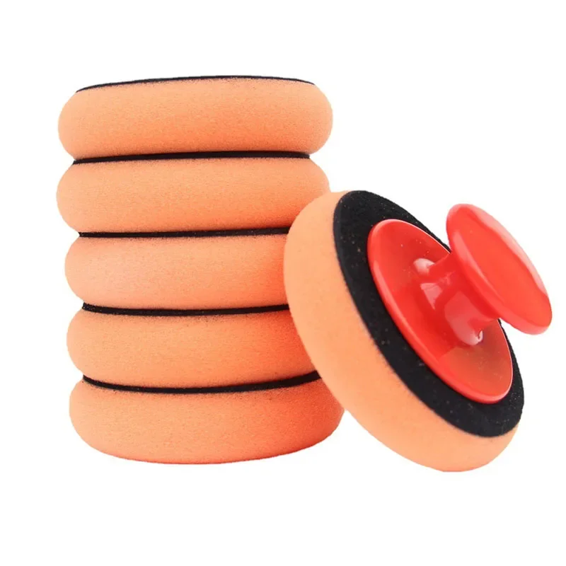 - Round, vibrant orange foam pads feature a textured black velvety surface on one side, designed for smooth, even wax or polish application every time.