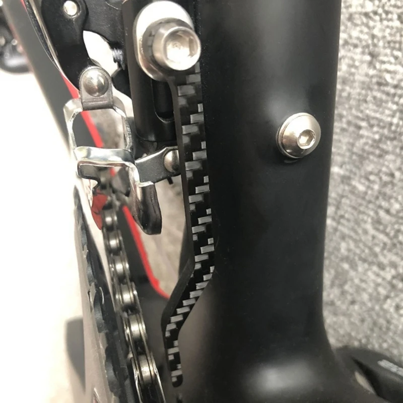Experience enhanced riding confidence with this this universal road bicycle chain guide. Crafted from lightweight, durable carbon fiber, it offers a high-performance, minimalist look that seamlessly blends into your bike’s aesthetic. Its elongated, 92mm (3.62″) design provides optimal chain stability during high-speed rides, while its rust-proof, non-deformable construction ensures long-lasting reliability. The included titanium screw and front locking screw make installation straightforward without requiring complicated tools, so you spend less time setting up and more time enjoying the ride. This chain catcher is perfect for preventing chain drops and chain suck, providing peace of mind on demanding terrains. It’s a subtle upgrade that offers both style and function, elevating your road biking experience.