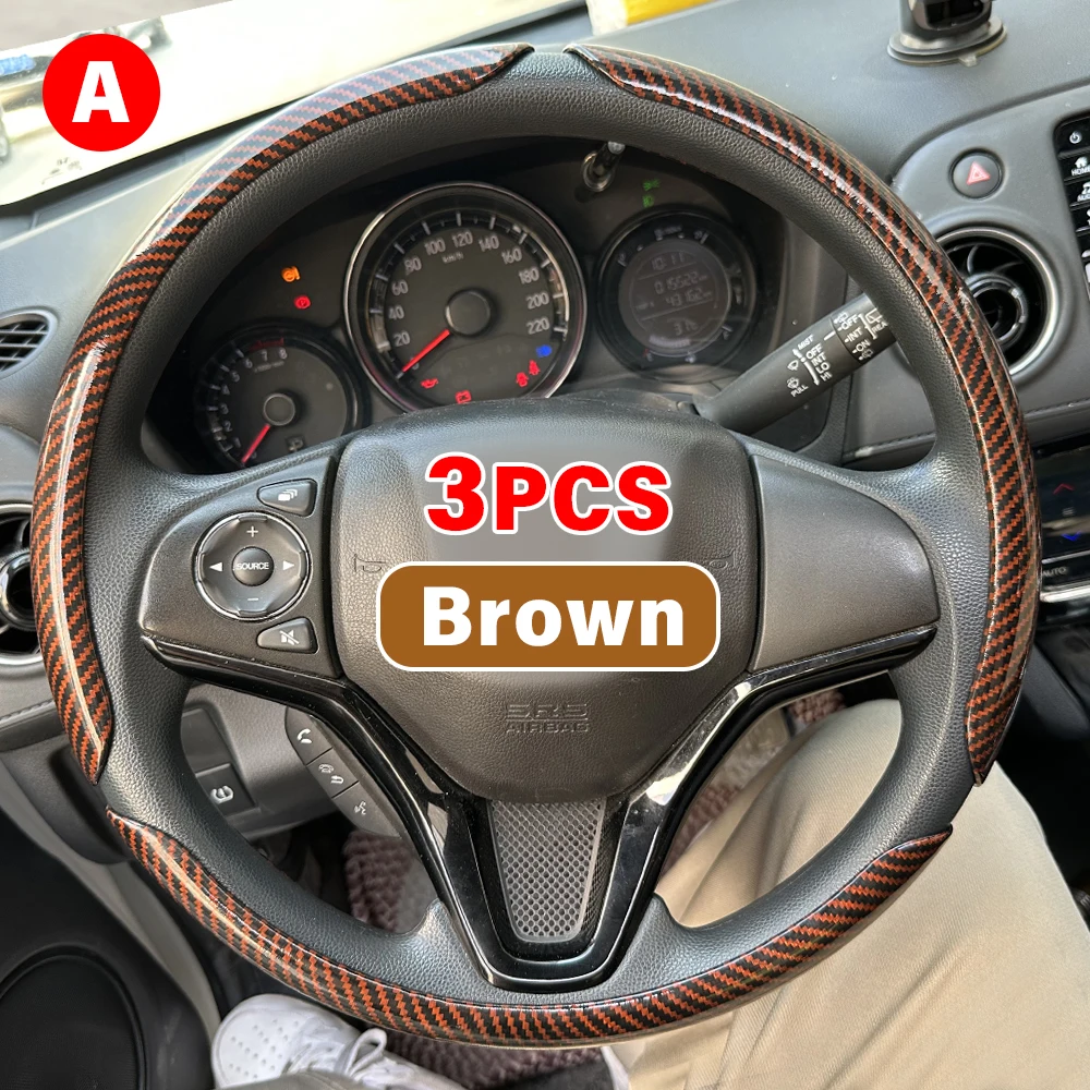 Enhance your vehicle’s interior with this stylish 38 cm diameter steering wheel cover, crafted for round steering wheels and compatible with BMW, Audi, Mercedes, Toyota, and VW models. Made without harmful chemicals, it features a sleek, glossy carbon fiber-like pattern with subtle diagonal lines for a sporty, modern aesthetic. The set includes three pieces and is available in multiple color options—Black, Brown, Red, Silver, White, Grey, and Blue—across four variations (A-D). Designed with precision-contoured edges and high-quality stitching, this auto accessory transforms your driving experience with added style and a comfortable grip, proving both functional and visually appealing.