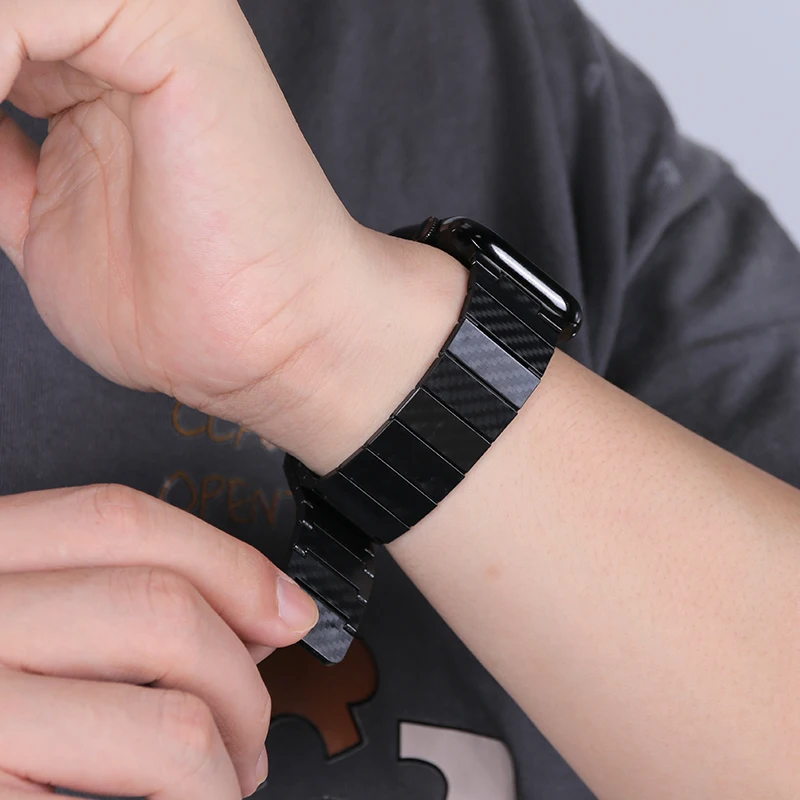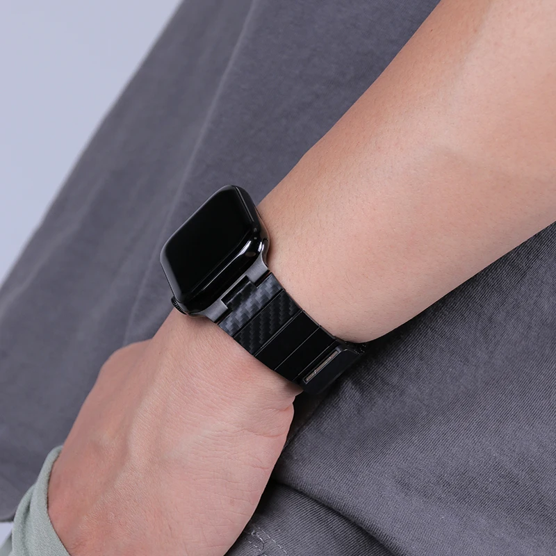 Enhance your Apple Watch with this sleek, unisex carbon fiber-style strap featuring a lightweight acrylic design and a secure magnetic clasp. Compatible with series 10, SE, 6, 7, 8, and 9, it fits multiple sizes including 38mm, 40mm, 41mm, 42mm, 44mm, 45mm, 46mm, and 49mm, with widths ranging from 38mm to 49mm. The strap showcases a modern, textured black appearance resembling real carbon fiber, combined with a slim, lightweight profile that offers both durability and sporty elegance. Perfect for elevating your smartwatch aesthetic, this universally compatible band provides a comfortable, secure fit for everyday wear, whether you’re at the gym, at work, or out on the town.