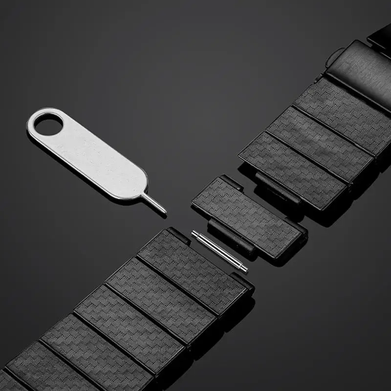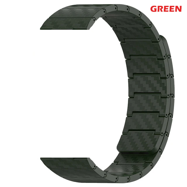 Experience the perfect blend of modern style and sporty functionality with this detachable carbon fiber-inspired strap designed for your smartwatch. Crafted from durable acrylic material featuring a textured, matte finish, these straps offer a sleek, high-tech appearance ideal for active lifestyles and everyday wear. The segmented links allow for a customizable and comfortable fit, while the subtle color options—black, blue, and green—add versatility to match your personal style. Compatible with multiple models such as Huawei Watch GT series, Garmin Fenix, Samsung Galaxy Watch, Amazfit Bip 3, Xiaomi Mi Watch, TicWatch Pro, and Honor Magic Watch, these straps combine style with practicality. Easily attach and detach to refresh your look instantly.