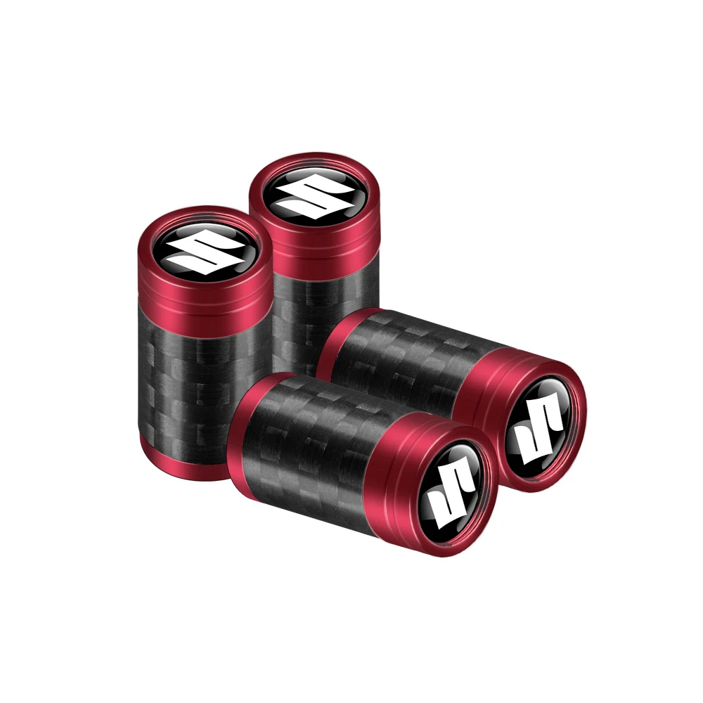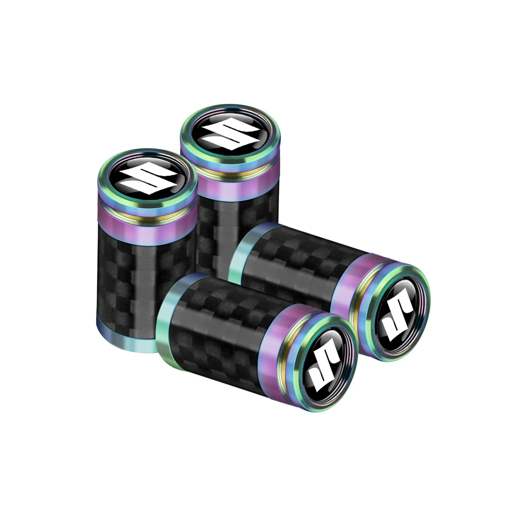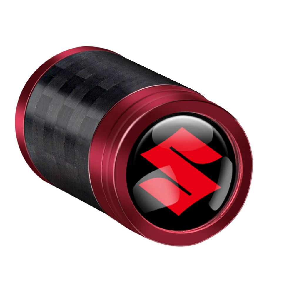 Enhance your vehicle’s look and performance with this set of four carbon fiber air valve caps. Crafted from durable, lightweight carbon fiber, these caps boast a sleek cylindrical shape with a polished finish, giving your car, motorcycle, or bicycle a modern and sporty appeal. They come in vibrant colors: red, black, iridescent, and silver, with a striking black face featuring a stylized “S” logo in red or white for an added touch of distinctiveness. Designed for universal compatibility, these caps easily screw onto any standard valve. Besides their aesthetic appeal, they serve a crucial functional role by protecting valve cores from dirt, moisture, and damage, ensuring consistent tire pressure and optimal vehicle performance. Perfect for both style and practicality, they add a personalized touch to your vehicle.