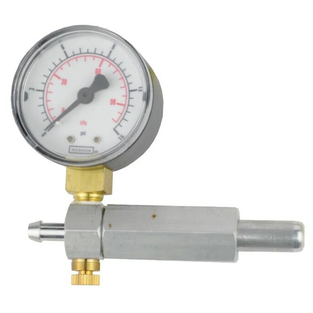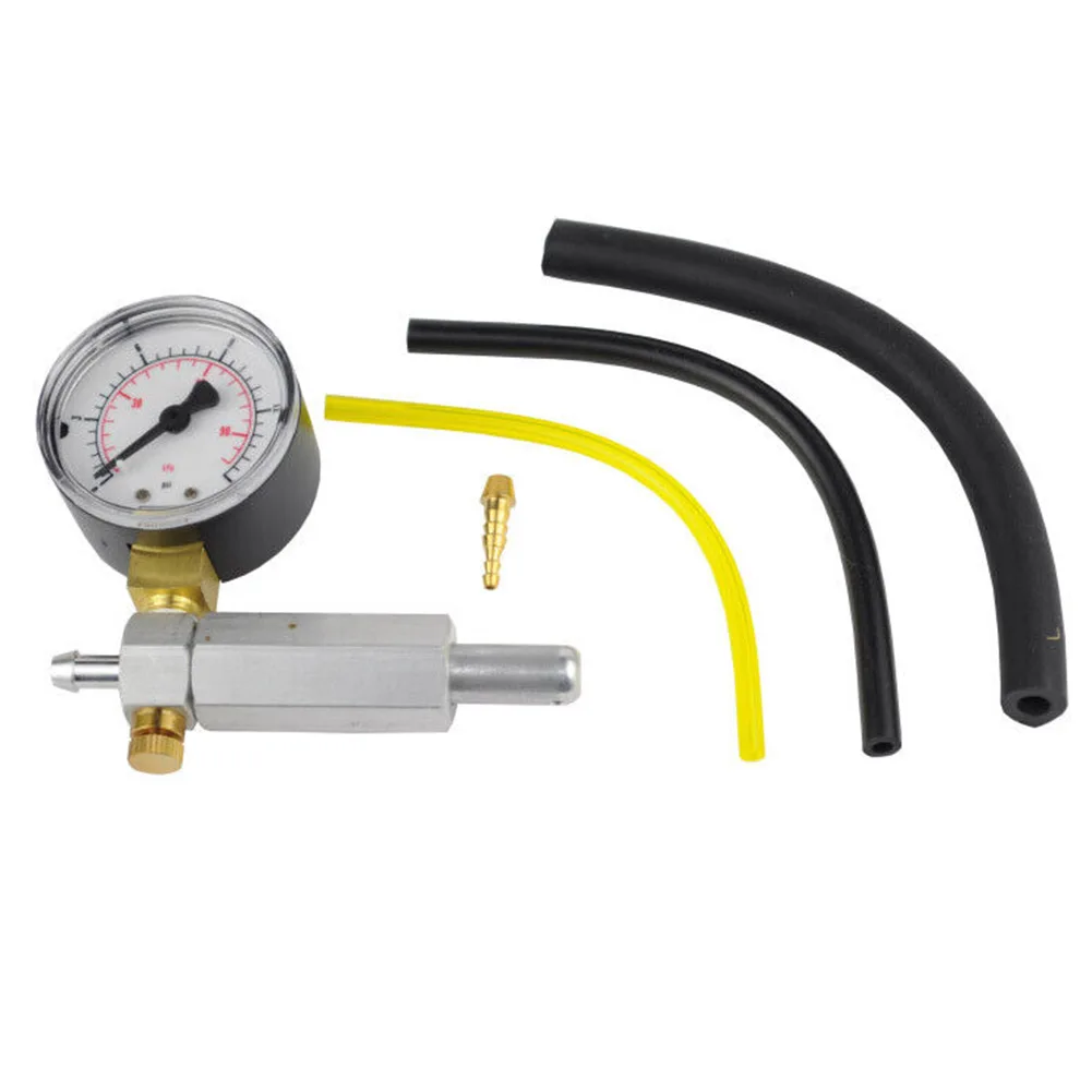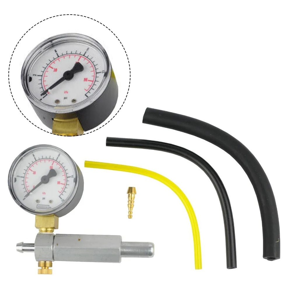 Ensure optimal performance of your lawn mower or garden tool with this high-quality carburetor pressure gauge, crafted from durable aluminum alloy. Designed for leak diagnostics, this pressure gauge replaces parts with the number 57-21 705-020, making it compatible with various models. It features a sleek, professional look with a white face marked by bold black, red, and gray calibrations for precise readings. The gauge includes a brass-colored fitting and an aluminum alloy connection for reliable attachment, along with flexible rubber hoses for secure connections. Ideal for DIY enthusiasts, this tool helps you efficiently identify leaks and maintain your equipment’s peak performance.