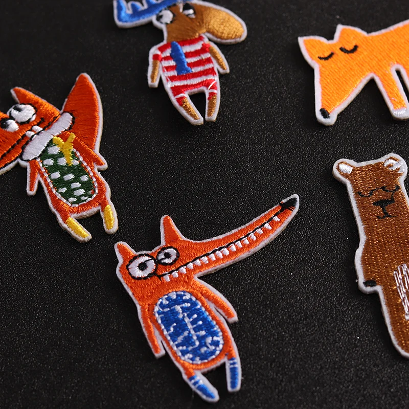 Brighten up your wardrobe with this charming set of five cartoon animal patches, perfect for personalizing clothing and bags. Each patch, made from eco-friendly non-woven fabric, showcases playful designs featuring distinct characters like foxes, a moose, and a bear, rendered in vibrant colors (G-BT8891, G-BT8888, G-BT8889, G-BT8890, G-BT8887). With printed techniques and 3D handmade details, these iron-on patches easily adhere with a household iron or heat press. Ideal for T-shirts, tops, pants, coats, bags, and curtains, let your creativity shine as you customize and enhance your favorite items!