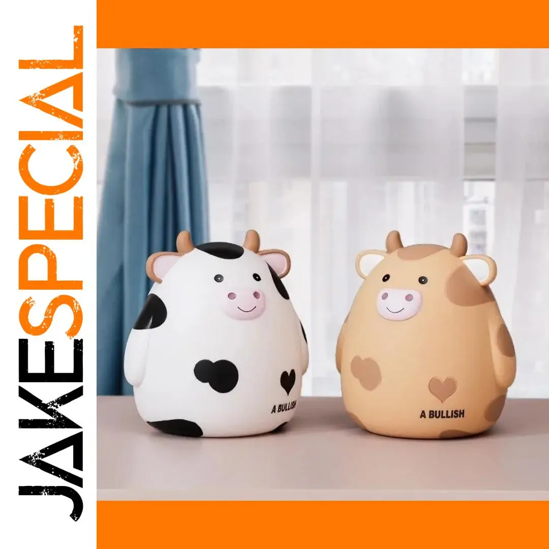 Imagine adding this delightful cartoon calf piggy bank to your child's space, inspiring them to develop good saving habits while brightening their room. Crafted from durable, high-quality vinyl, this bank features a realistic yet playful design with vibrant colors and a glossy finish that catches the eye. Its cheerful face with small black eyes, a pink snout, and rounded ears makes it irresistibly adorable. The stable, rounded base ensures it stays securely in place, while the top slot provides easy access for inserting coins. The bottom panel is simple to remove, encouraging daily savings in a fun and engaging way. Available in classic white with black patches or warm khaki with darker patches, it perfectly matches any decor and adds a touch of whimsy.