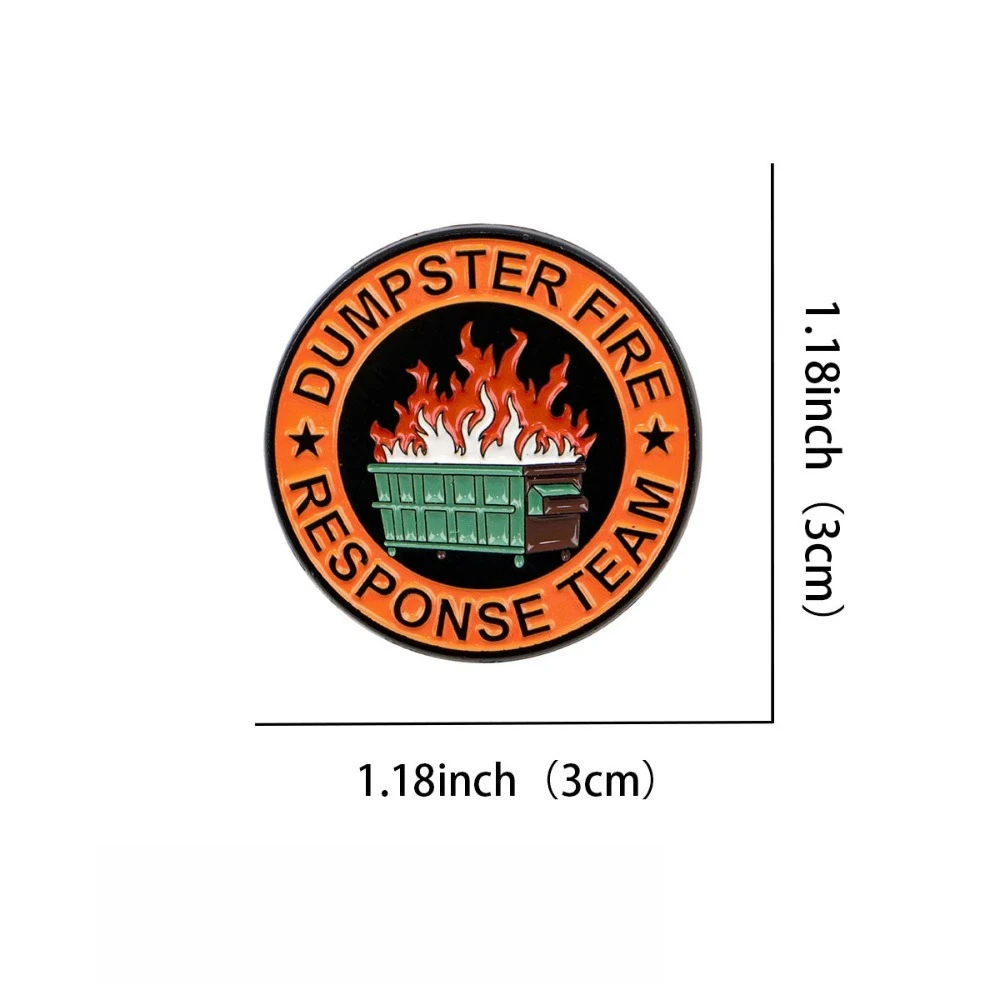 Embrace the humor and fun of the Cartoon Dumpster Fire Metal Pin, an accessory that effortlessly elevates any casual outfit. Crafted from durable alloy, this trendy pin features a vibrant orange border inscribed with “DUMPSTER FIRE RESPONSE TEAM” in bold black letters. At its center sits a whimsical illustration of a green dumpster with colorful flames bursting from the top in shades of red and yellow. Perfect for adding a unique touch to jackets, backpacks, hats, or any DIY clothing project, this pin speaks to your fun-loving side and serves as a great conversation starter.
