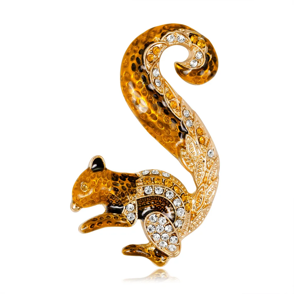 This stunning Cartoon Squirrel Brooch is a must-have accessory for anyone looking to add a playful touch to their outfit. Crafted from high-quality alloy, this piece showcases a beautiful blend of light brown, black, and gold tones, embodying a whimsical yet elegant style. The intricately designed squirrel, complete with sparkling rhinestones and a vibrant red gemstone eye, captures the essence of nature's charm. Whether you adorn your jacket, backpack, or hat, this versatile brooch promises to elevate your fashion game. And with its retro yet trendy appeal, it's perfect for both men and women, making it a delightful addition to any wardrobe.